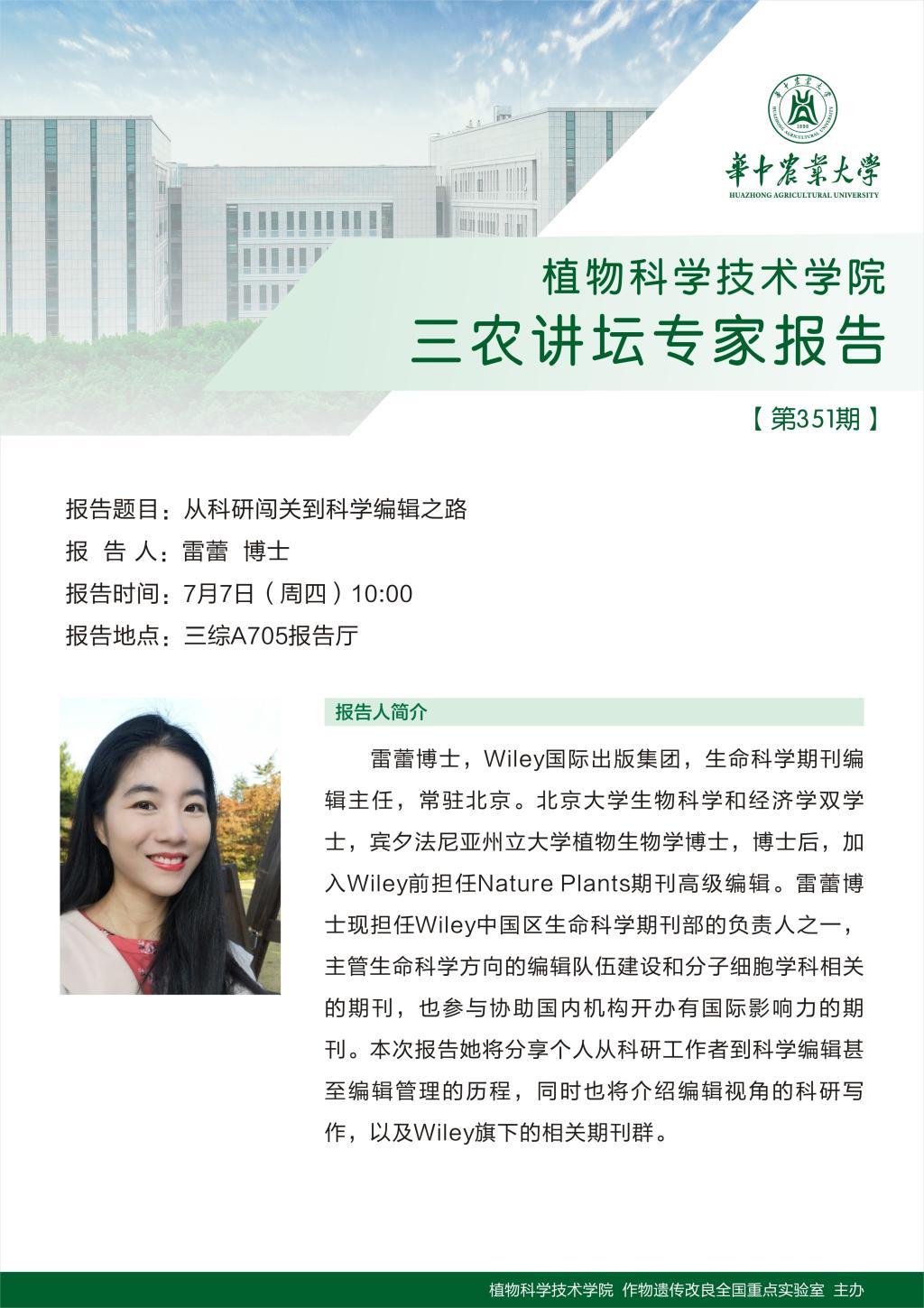 三农讲坛专家报告(雷蕾 博士)