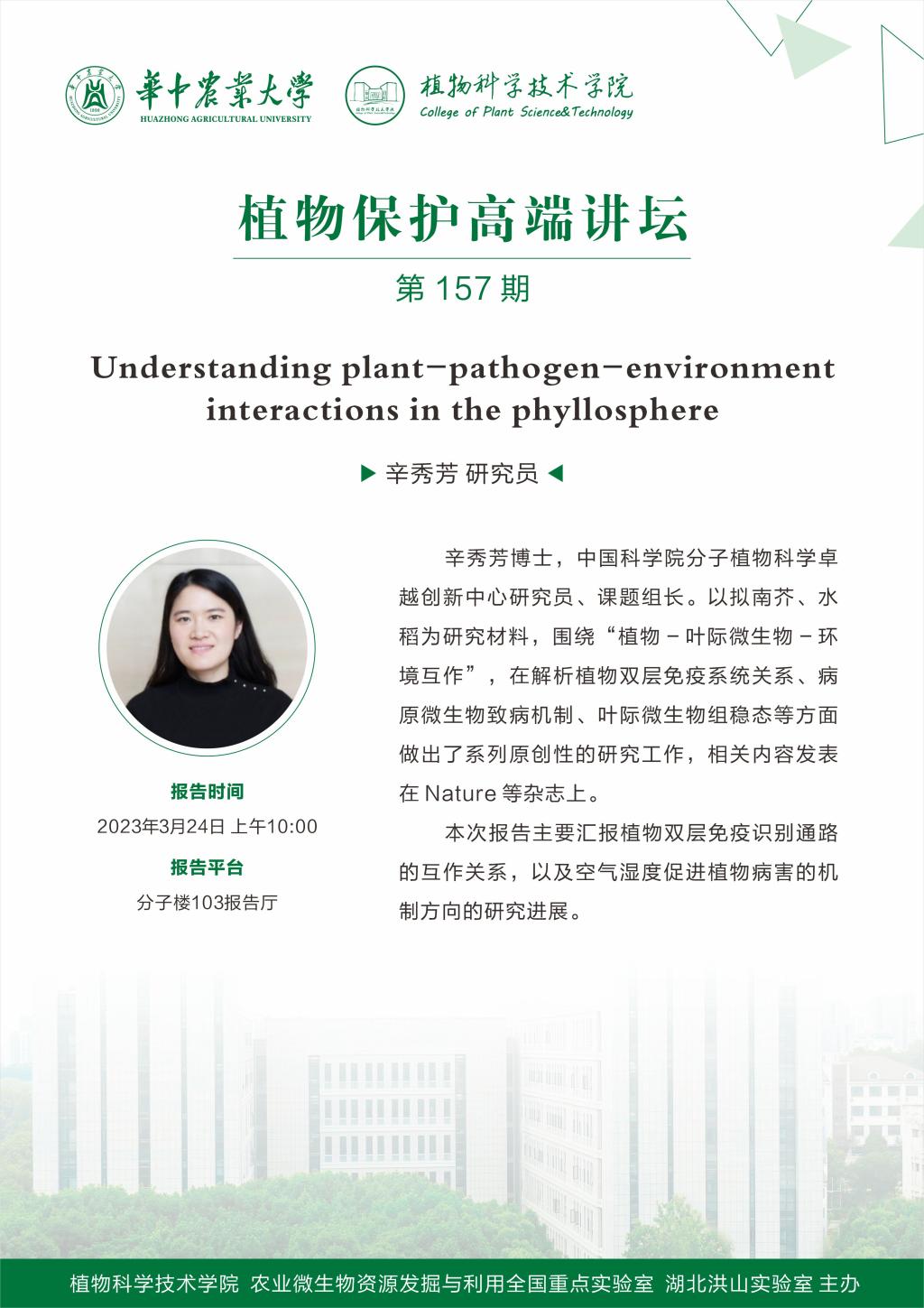 植物保护高端讲坛(辛秀芳 研究员)