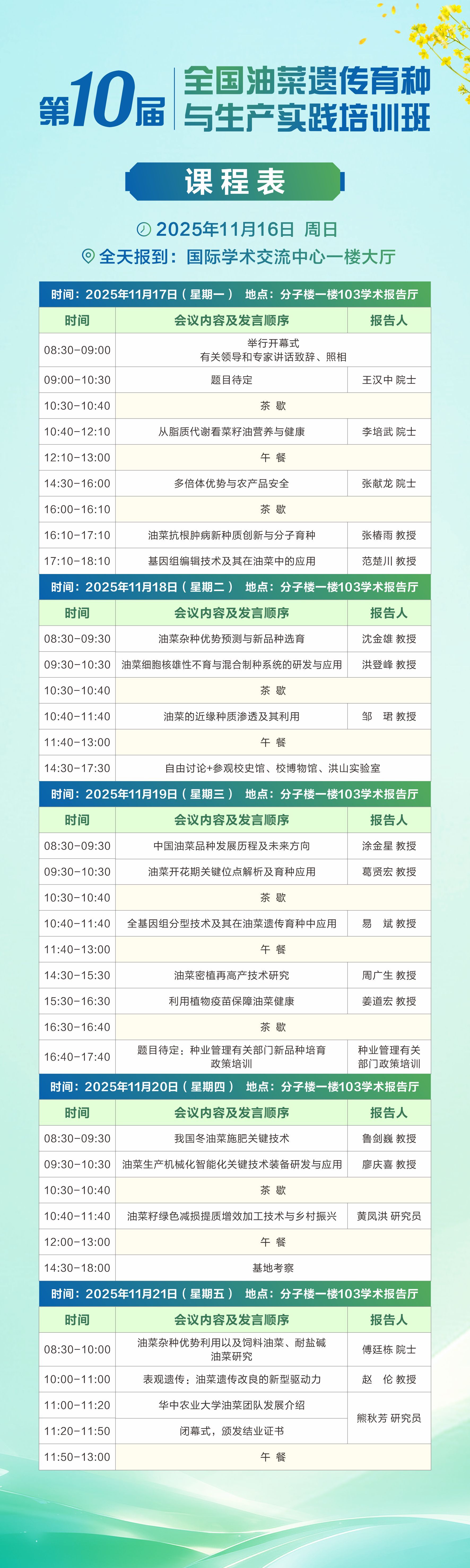 第十届全国油菜遗传育种与生产实践培训班