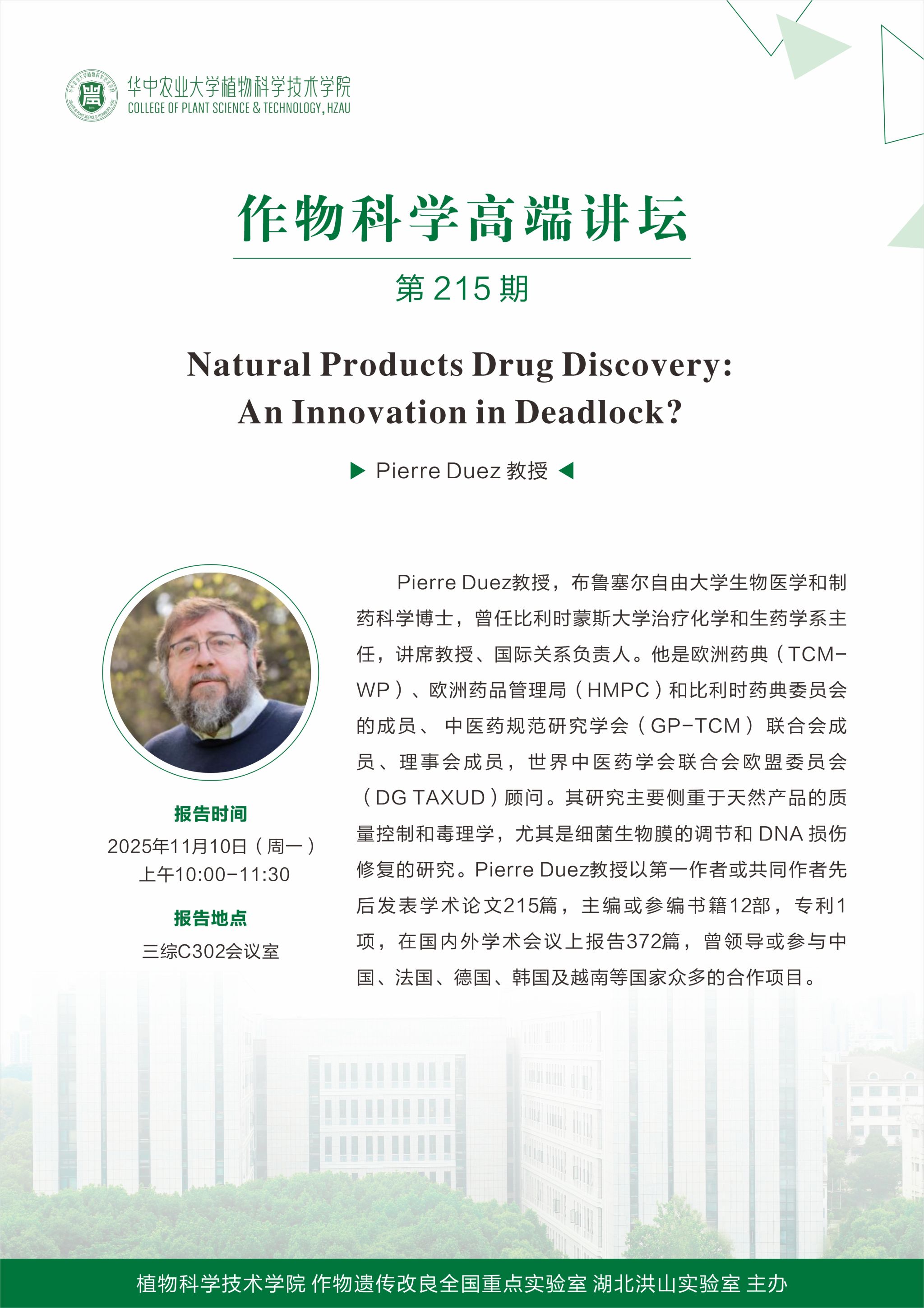 Natural Products Drug Discovery: An Innovation in Deadlock?(Pierre Duez教授)