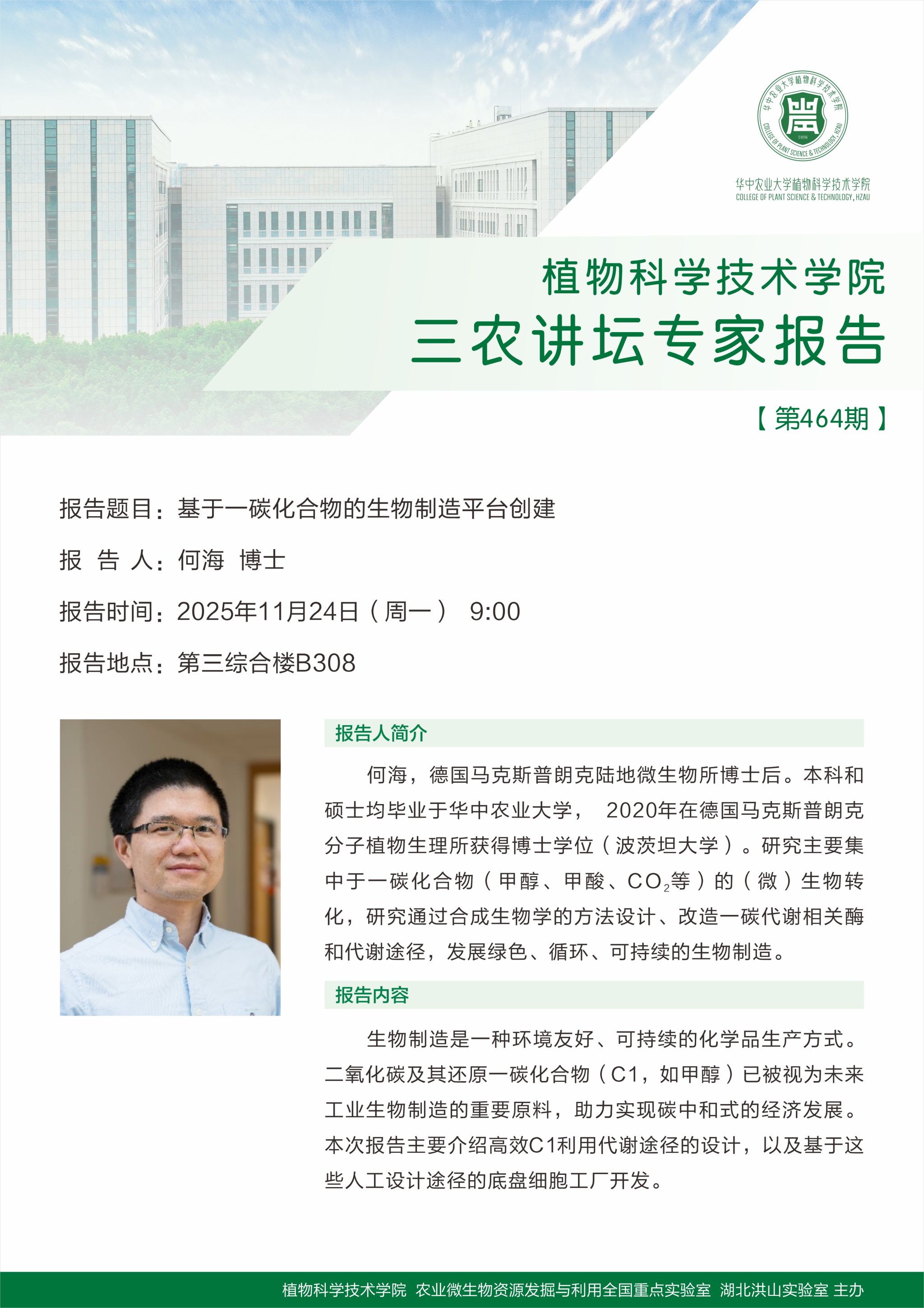 基于一碳化合物的生物制造平台创建(何海 博士)