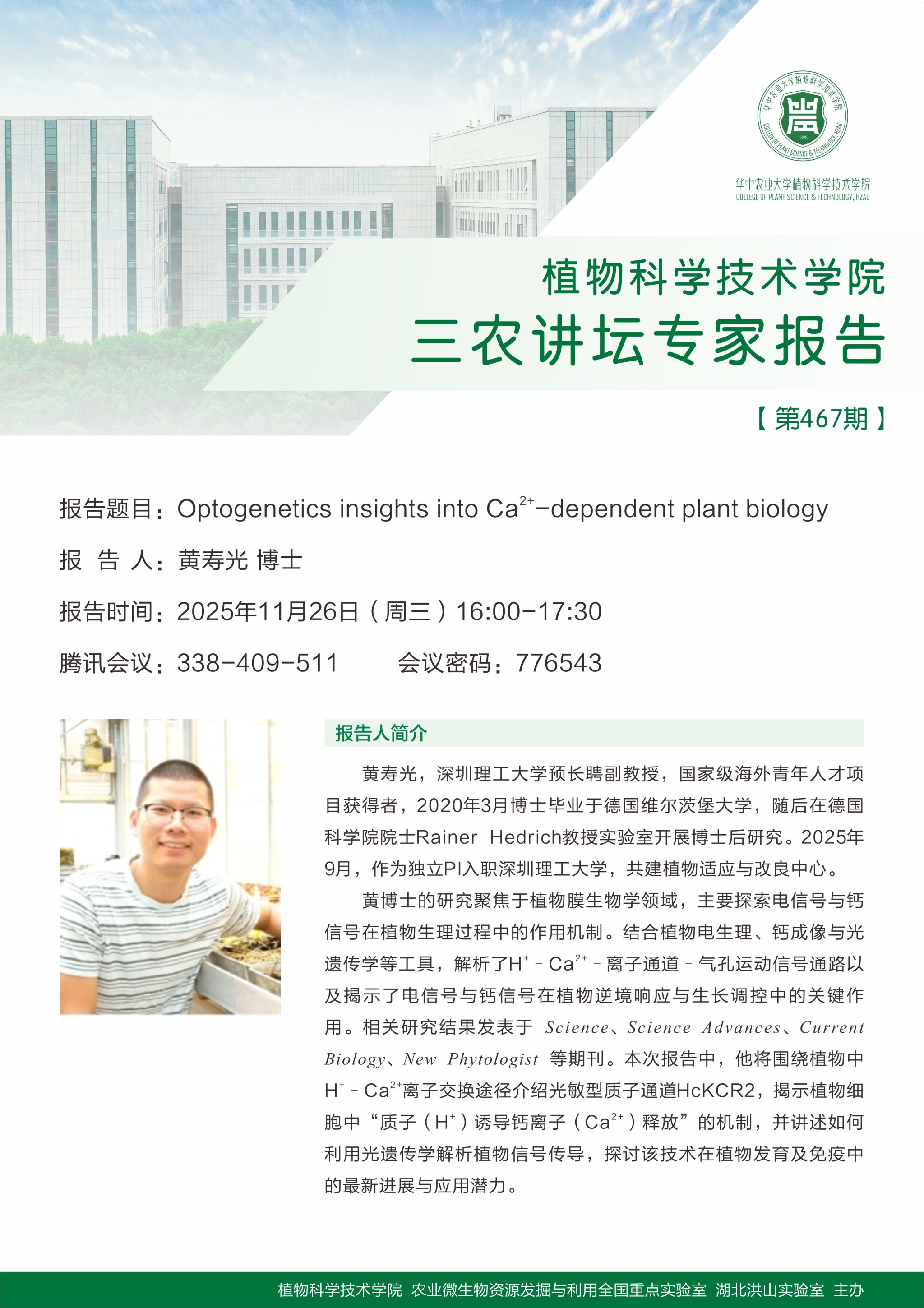 Optogenetics insights into Ca2+–dependent plant biology(黄寿光 博士)