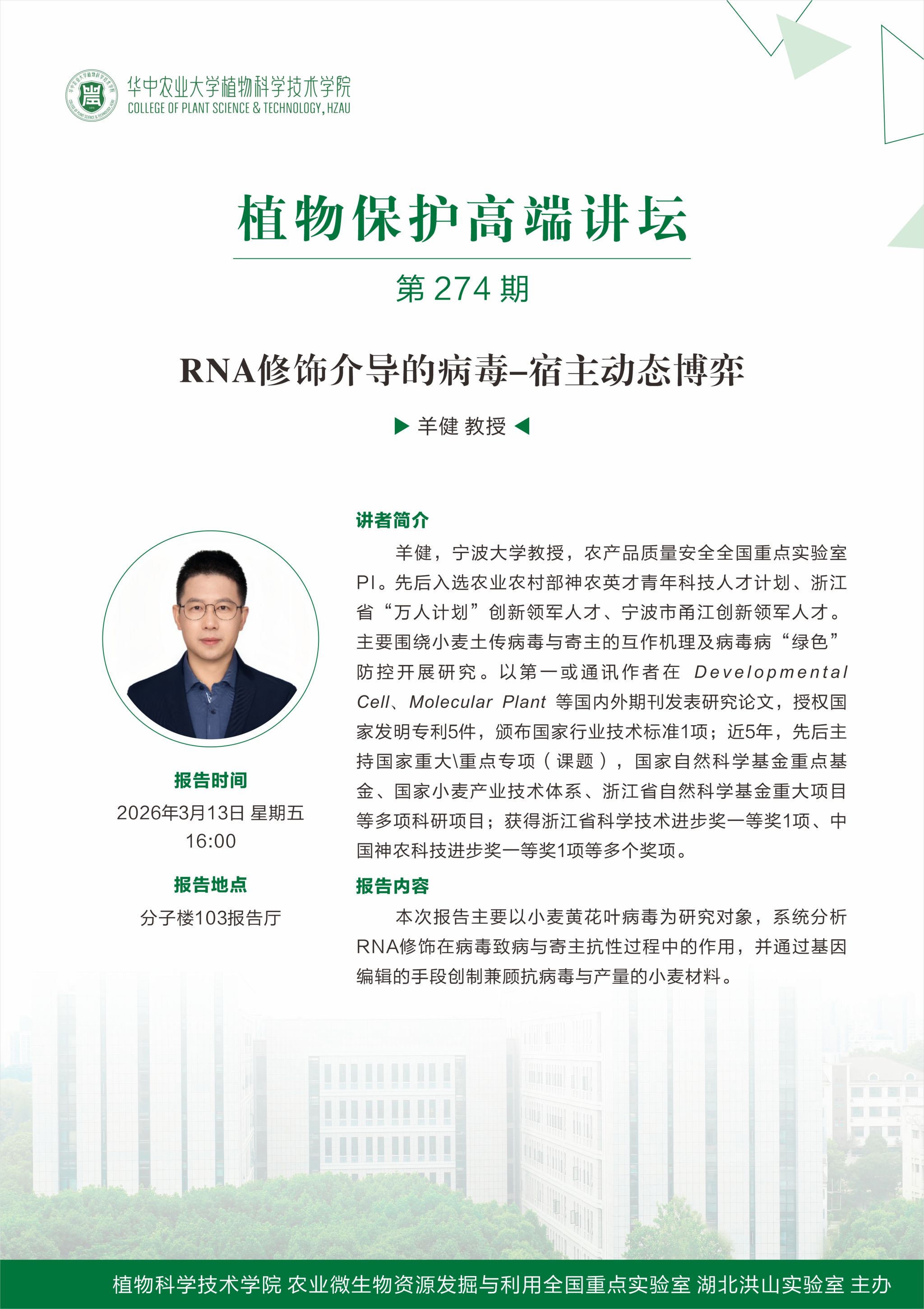 RNA修饰介导的病毒-宿主动态博弈(羊健 教授)