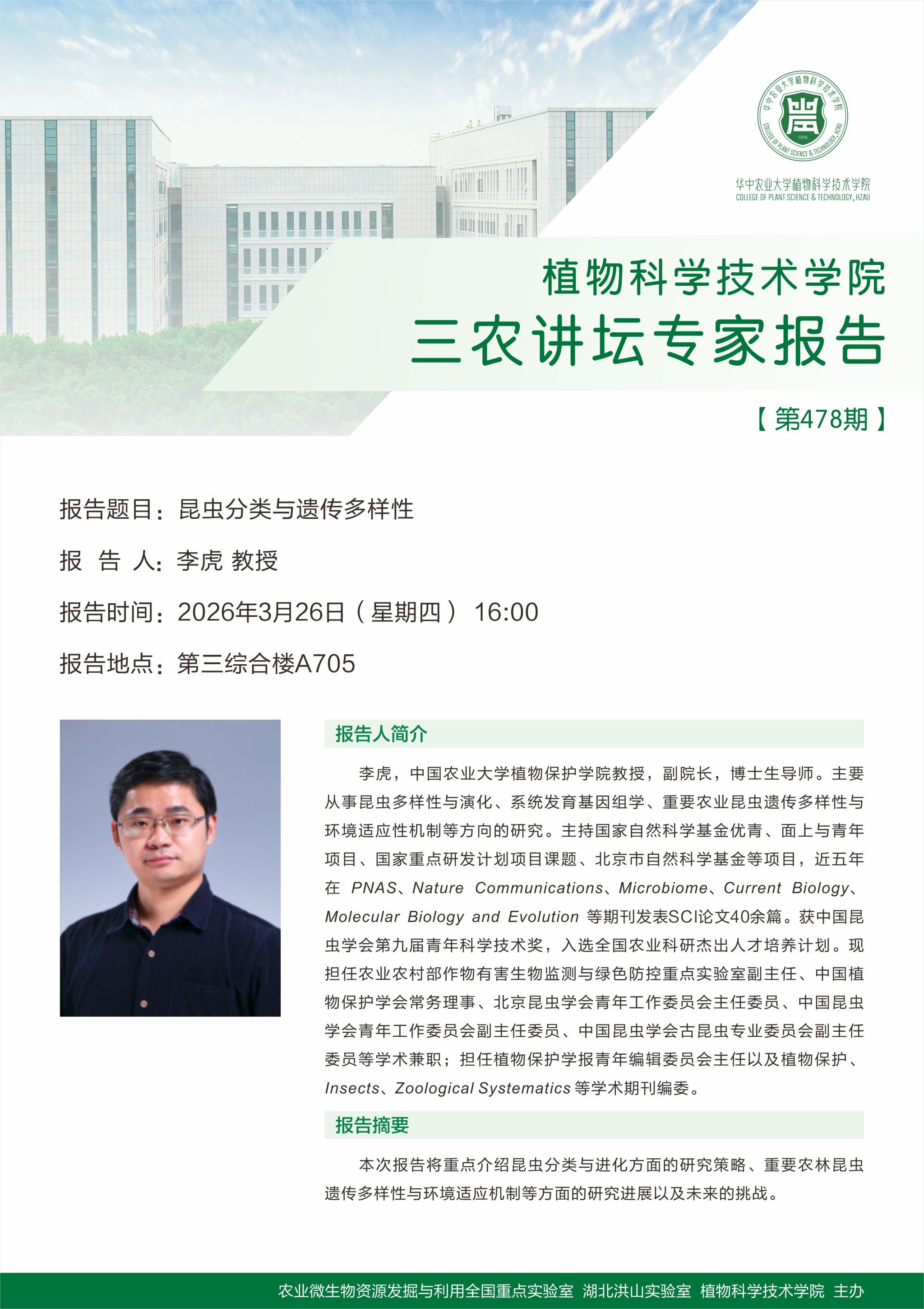 昆虫分类与遗传多样性(李虎 教授)