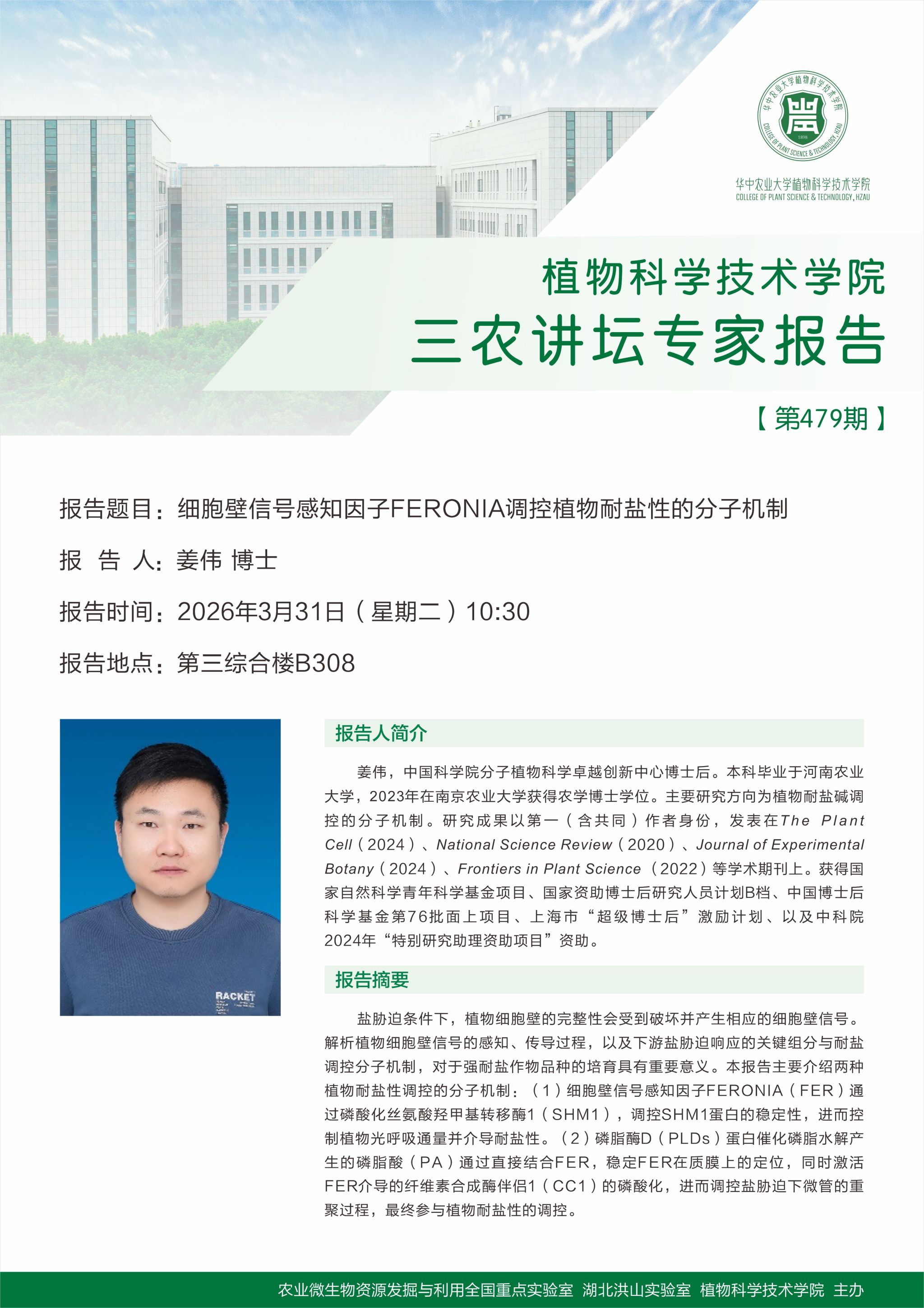 细胞壁信号感知因子FERONIA调控植物耐盐性的分子机制(姜伟 博士)