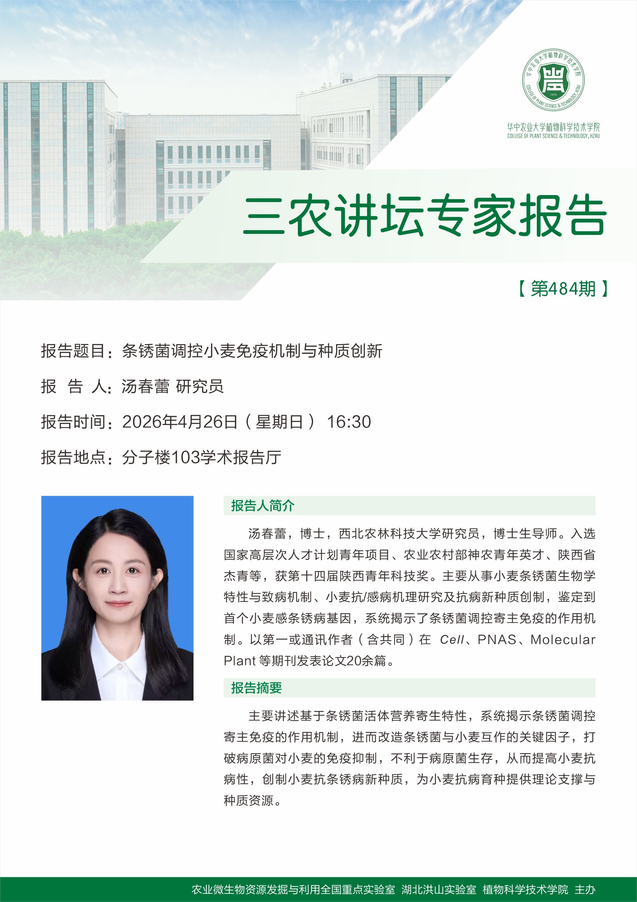 条锈菌调控小麦免疫机制与种质创新(汤春蕾 硏究员)