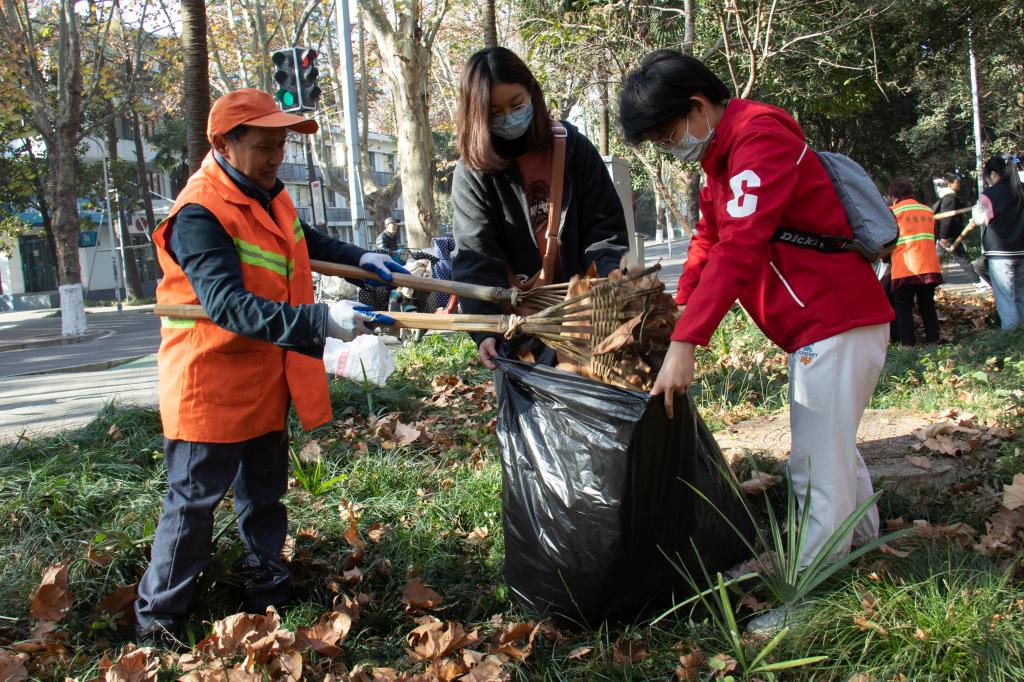 “每当遇到大风天气,他们凌晨3点就得起床把校园提前清理干净。”这是学院植保第二党支部副书记吴沛珊在与支部成员交流校园环卫人员每天的工作时发出的感叹。12月4日上午,学院植保第二党支部与后保部校园环维中心室外保洁部在校内联合开展了“学史力行”志愿服务活动,植保第二党支部37名青年党员参与。