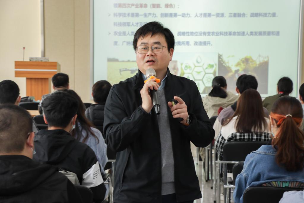 “新时代的我们要做好准备,要用党的创新理论指导实践”,周雄讲到,这是党对新时代党员的要求,也是我们践行党员义务的必经之路。他表示,大家要以学习为首要任务,在学习专业知识的同时坚持政治学习,始终坚持用党的先进思想武装头脑。随后,他结合大家的专业特点和所处领域,针对性地指出,我们要主动学习现代科学知识,与时俱进吸收党的创新理论,不断自我改造、自我提升,为现代农业的发展做出自己的贡献。