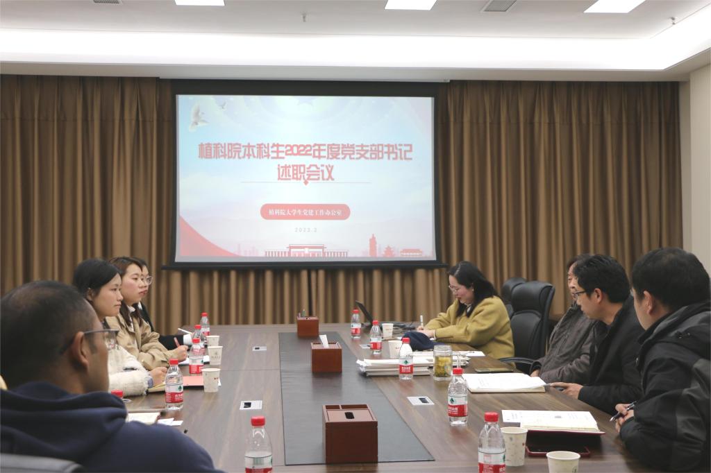 会上,7个本科生党支部围绕2022年党支部的支部建设、党史学习、特色活动、问题查摆与总结展望等方面作详细报告。其中,农学专业第一党支部李嘉欣同志对支部开展的特色活动进行了介绍;农学专业第二党支部梁涵宇同志从创新主题党日形式着手,详细介绍了支部“学党章”“支部党员领学”等创新性学习方式;植保专业第一党支部宋慈同志分享了支部日常管理建设情况,就如何让支部组织建设强起来,活起来提出新的年度计划;植保专业第二党支部张乐同志讲述了支部一年来的特色共建活动,并提出未来要继续加强师生共建、本研共建,筹办更有意义的支部活动;植科专业党支部何益婷同志介绍了植科专业党支部2022年的支部建设情况及未来一年的发展规划;智慧农业专业党支部沈雨霏同志就如何加强朋辈联系,开展保研经验分享会等支部活动展开分享;种工专业党支部樊天一同志展示了支部一直坚持开展的未来规划分享交流会,每次邀请党员教师结合自身经历,引导支部党员学深悟透,走好人生路。