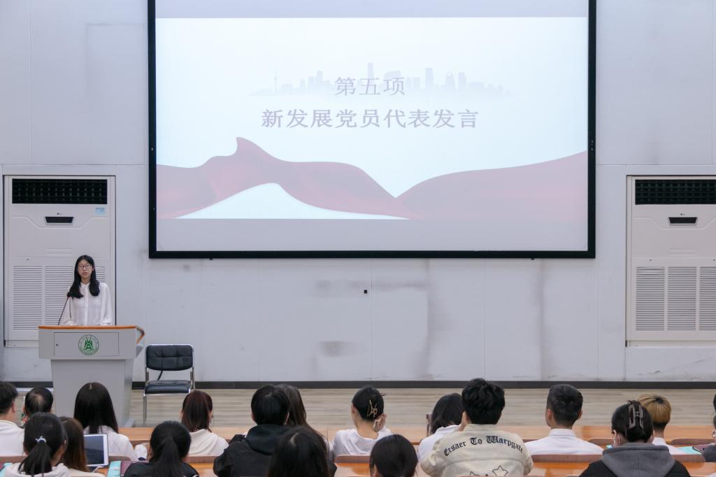 植保2004班李思滢作为新发展党员代表发言。“这是崭新的开始”,她表示,新起点新要求,她将努力向老党员看齐,时时刻刻用党员标准来要求自己,传承克服苦难的决心、敢为人先的精神、服务他人的毅力,争做一名合格党员。同时,她呼吁同学们筑牢思想根基,不忘入党初心,坚持以人民为中心,紧密联系群众。“不仅在思想上入党,更要在行动上入党。”要重视自身建设,追求全面发展,努力发挥党员先锋模范作用,积极奉献自我,努力做到“功成不必在我,功成必定有我”。