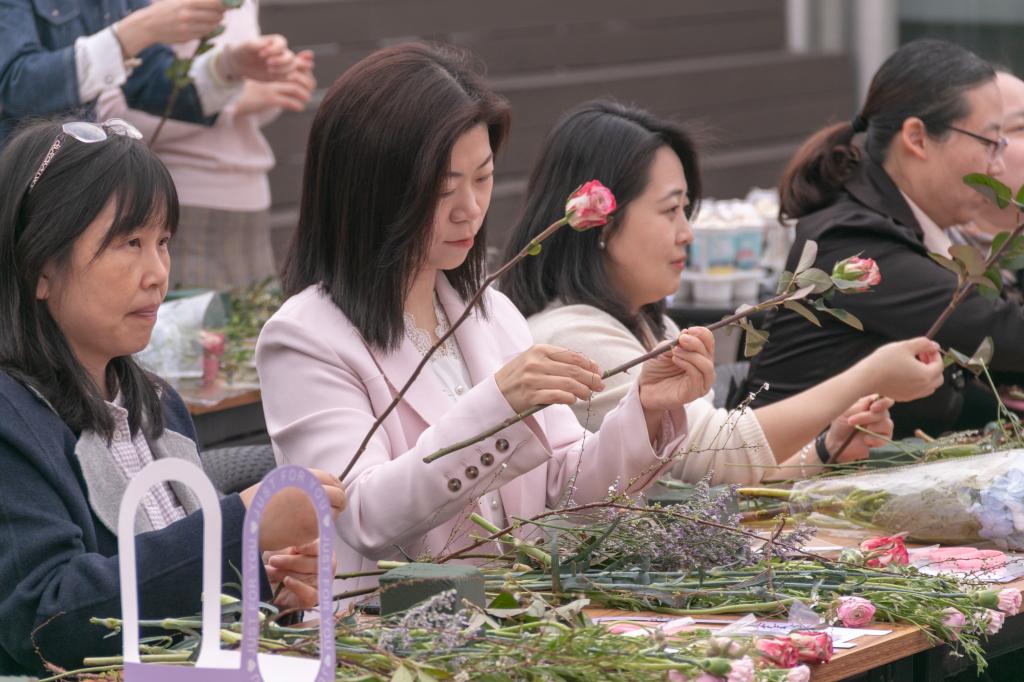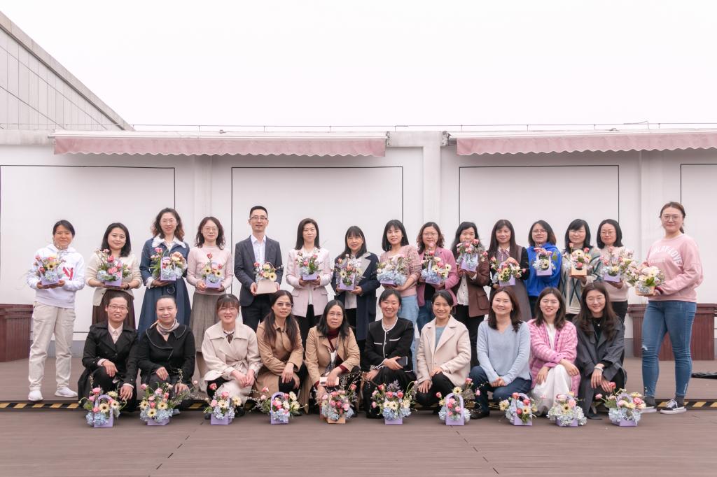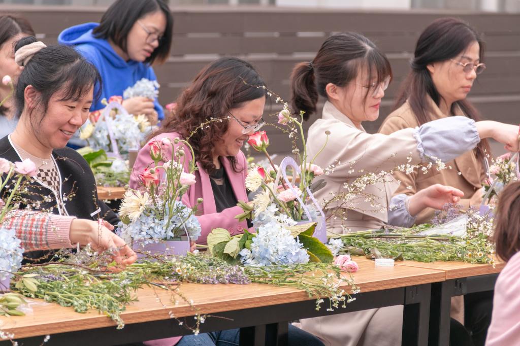 此次插花活动旨在通过插花体验来为女教师送上节日的祝福,同时也让老师们在繁忙的工作中抽出时间获得放松与宁静。最后,老师们手捧花篮、笑靥如花,在一声声快门闪烁间结束了这场春与花的盛约。