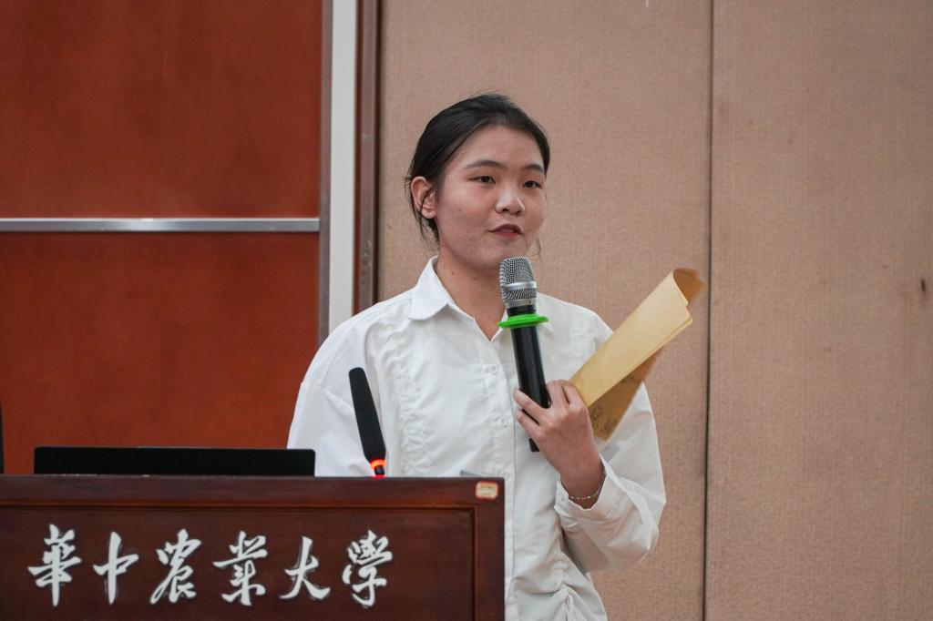 “红色家书载忠魂,纸短情长激担当”,植保专业第一党支部的舒娜从一封封红色家书入手,为大家徐徐讲述了其背后蕴含的动人故事,从抗美援朝烈士李征明到为国牺牲的战士陈祥榕,舒娜用她充沛的感情深深的感染了在场的每一个人,也让大家深刻的感受到“家书纸短,爱国情长”所蕴含的精神力量;智慧农业专业党支部徐展慧通过“七一勋章”获得者张桂梅的故事,讲述了张桂梅用初心和信仰书写一名共产党员对党忠诚、为民奉献、坚韧执着、于己克俭的高尚情怀。