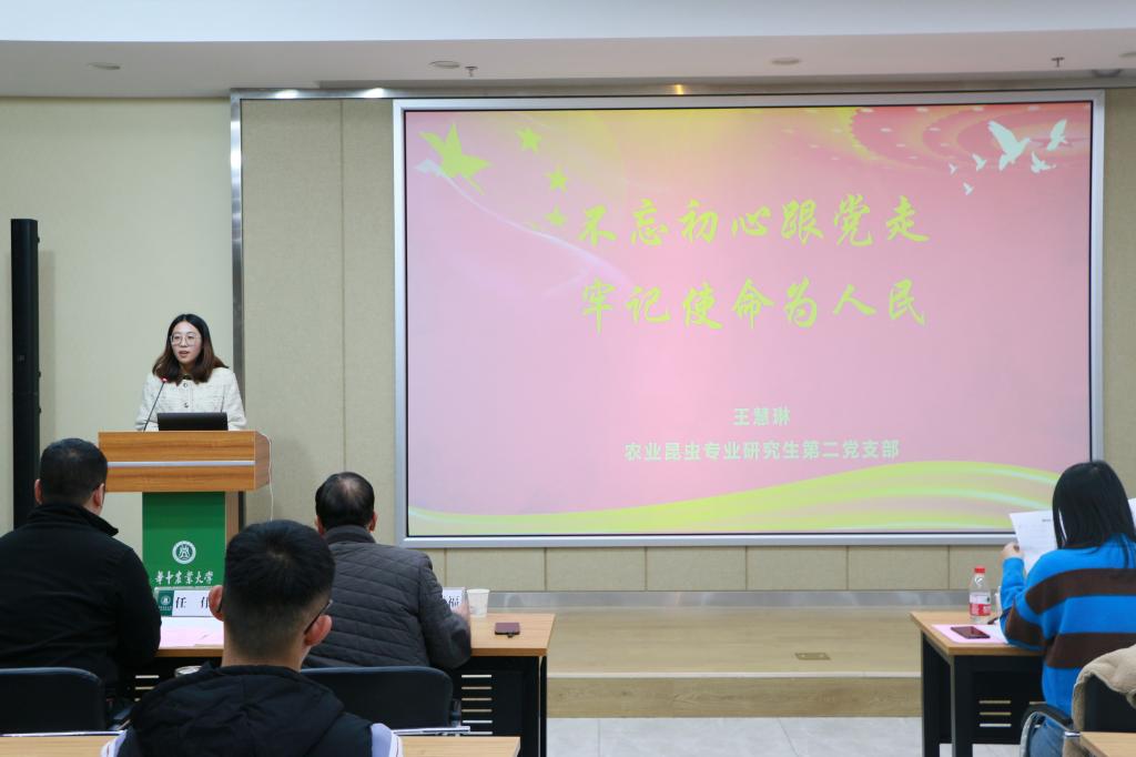 紧接着,研究生辅导员厉敏老师寄语全体党员和入党积极分子:“我们要提升自身的修养,强化自身建设,做到从思想上入党。组织上入党只是领进门,思想上入党才是党的人。思想上入党并不是一件容易的事情,但是是我们必须要做到并且完成的事情。其次是要记住实践是检验真理的唯一标准,希望大家能够牢记今天在答辩过程中所做出的承诺并为之付出实际行动。作为祖国建设中最具活力、最具创造力的新时代青年,应当在科研与学习过程中不断丰富自己的理论知识、发挥专业特长、为推动农业发展、推动祖国建设贡献自己的一份力量。”