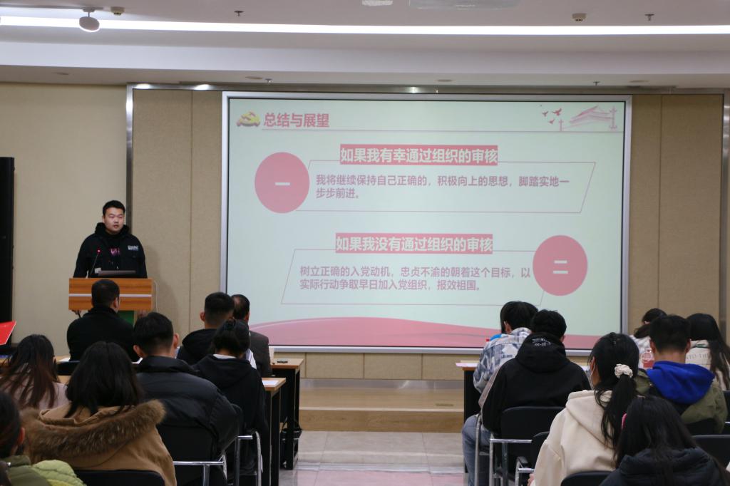 随后,研究生辅导员任伟老师从规范表达、规范格式和标准仪态等方面对今天的汇报展示提出相应建议。他强调:“入党意味着奉献、担当、先锋、模范,意味着需要我们挺身而出的时候能够站出来去承担责任。入党只是一个起点,无论今天推优是否成功都要继续深化学习,让理论知识真正入脑入心,牢记习近平总书记的嘱托,自讨苦吃、德行兼备,做一名优秀的农学研究生,把青春奋斗融入到祖国发展中去。”