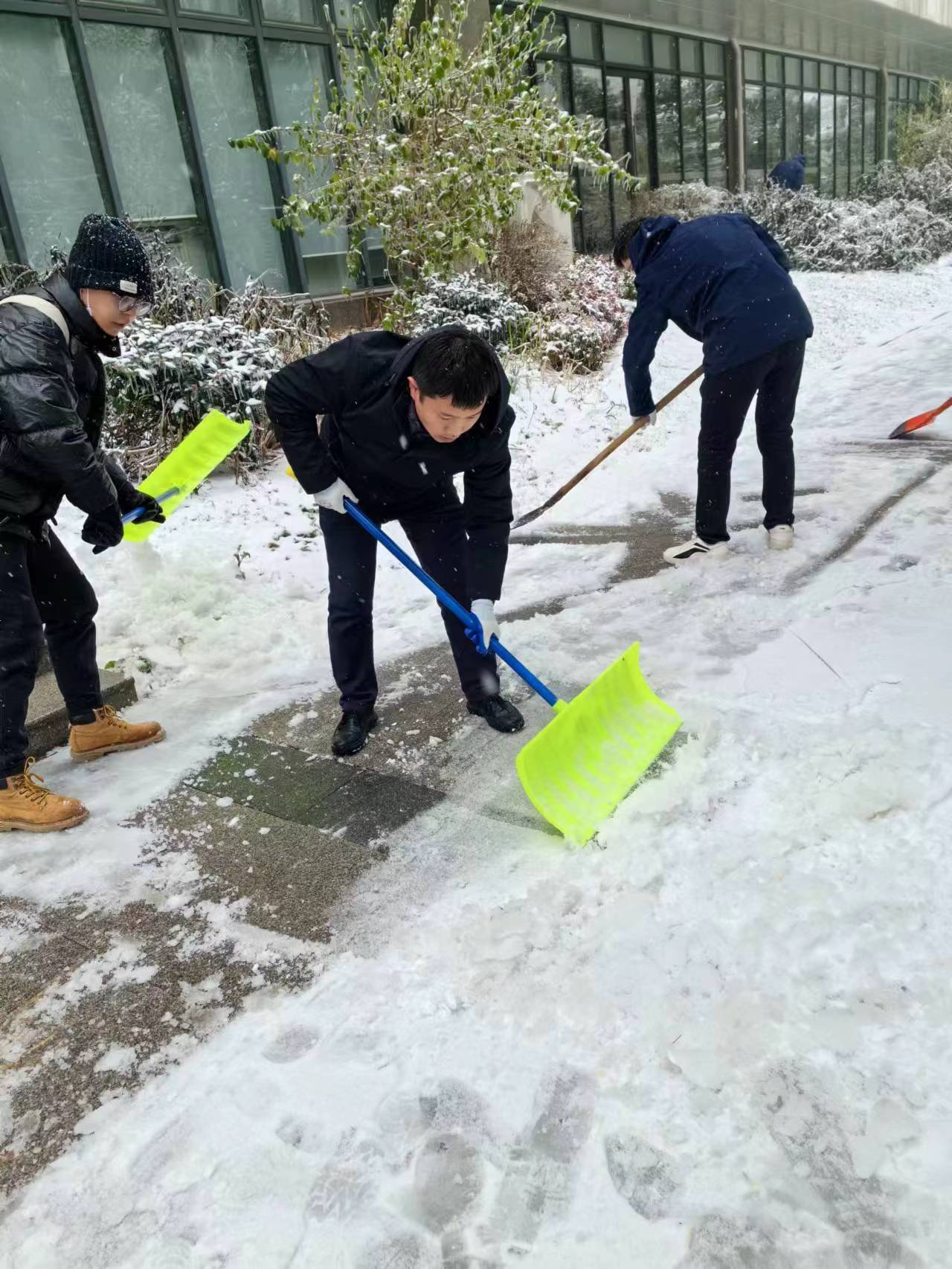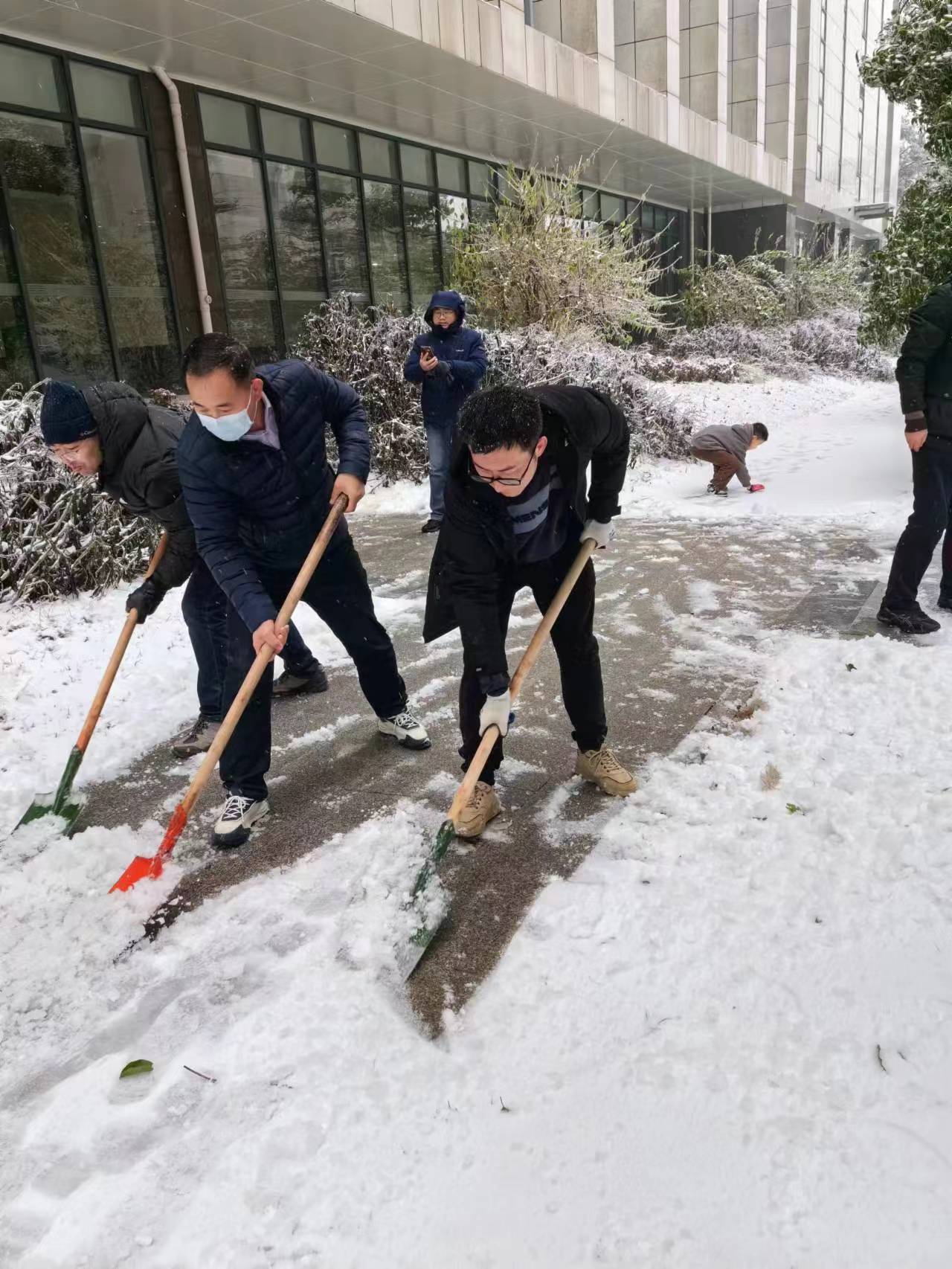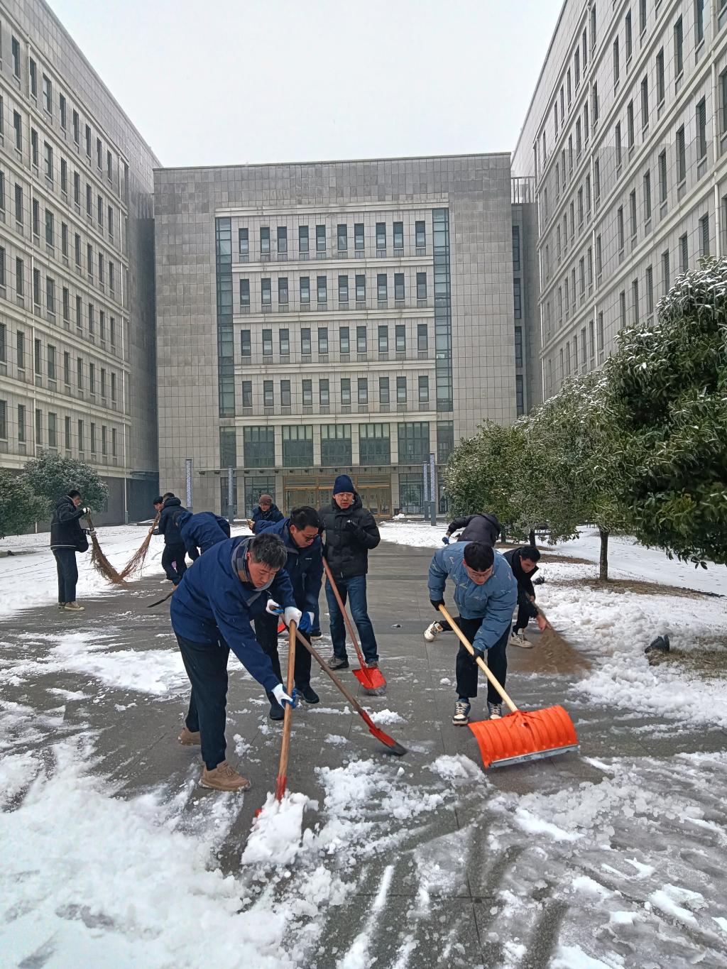 近日,湖北武汉遭遇低温暴雪恶劣天气,学校校园道路出现结冰积雪,校内部分区域发生树木断枝、倒伏现象。为及时消除安全隐患,2月4日上午,51黑料网 组建一支由留校教师、研究生组成的青年突击队,围绕三综、分子楼和真菌楼等周边,开展扫雪除冰,清除断枝和其他障碍物,保障师生安全出行。