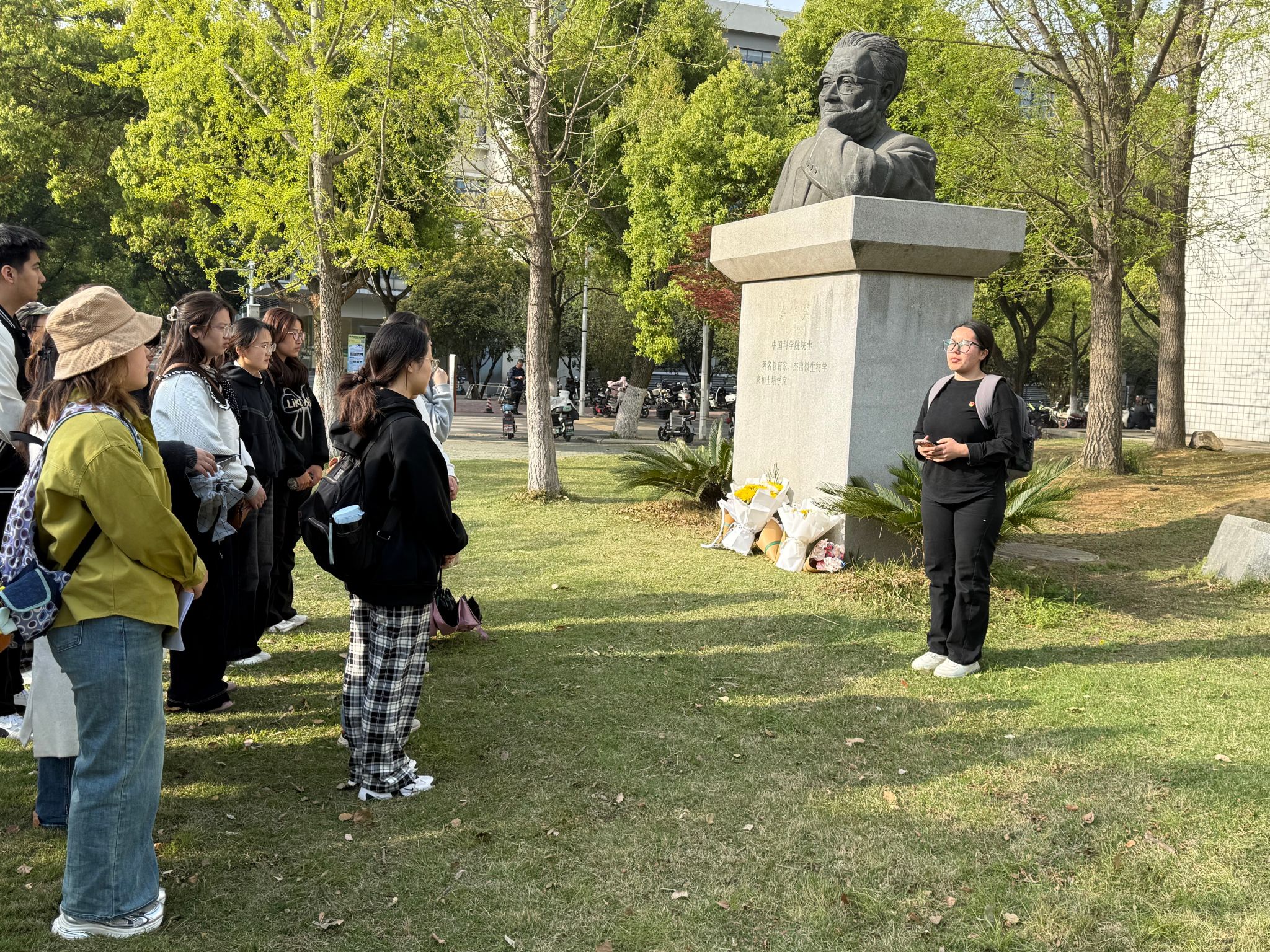 作物与植保方面学科先辈。本科生党员代表祖力批亚·玉苏普在陈华癸先生铜像前,讲述其开创中国微生物学研究的奋斗历程,先生用毕生心血铺就科研报国之路;研究生党员黄甜甜于刘后利先生纪念雕塑旁,重现“油菜之父”躬耕田畴六十载的科研坚守,努力在平凡的岗位上踏实做好每一件事,书写不平凡的人生;少数民族学生代表斯琴塔娜,在杨新美先生雕塑前说道:“先生将菌种写在大地上,将个人的规划与国家的需求紧紧联系在一起,他不仅是一位杰出的科学家、伟大的教育家,更是一位优秀的中国共产党党员!”。