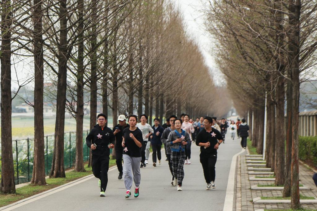 的同学们迈着坚定的步伐,充分展现出植科学子饱满昂扬的精气神。同学们互相加油打气,积极地和镜头互动,寒冷的天气也抵挡不住大家的热情。他们以寝室或是班级为单位,三五成群,一边跑一边欣赏着校园的美丽景色。路上的樱花、玉兰花、油菜花等百花齐放。在终日忙碌的工作学习中抽出时间的同学老师们借此机会放松自己的心情,陶冶自己的情操。