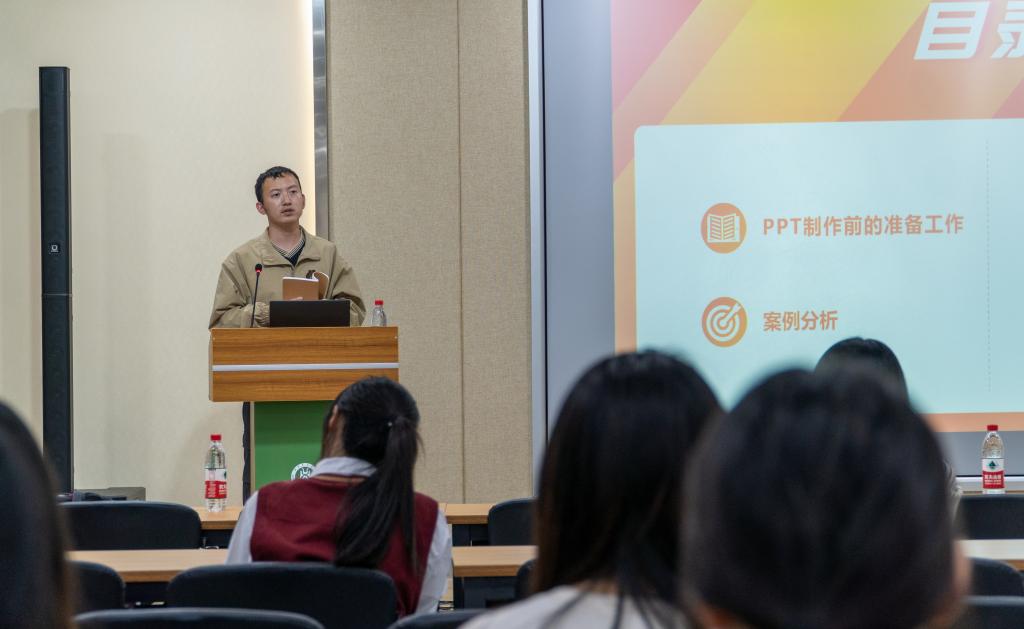 活动伊始,胡学谦老师向同学们说明了PPT制作的重要性。他强调,PPT制作在大学生活中是不可或缺的技能,所以PPT制作也成为了同学们必须熟练掌握的技能。