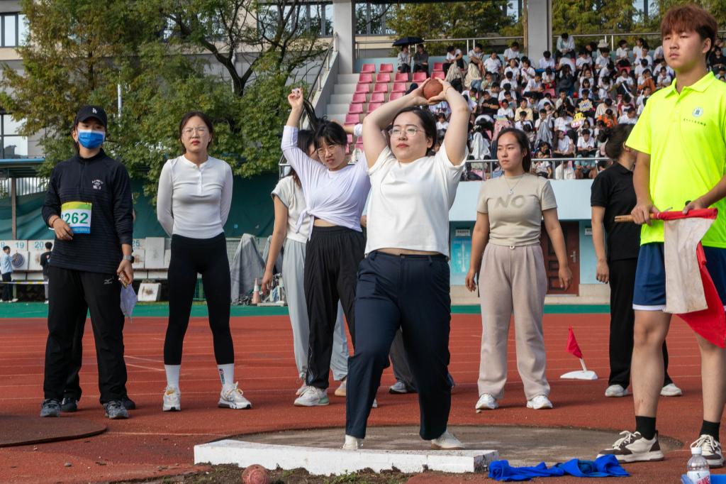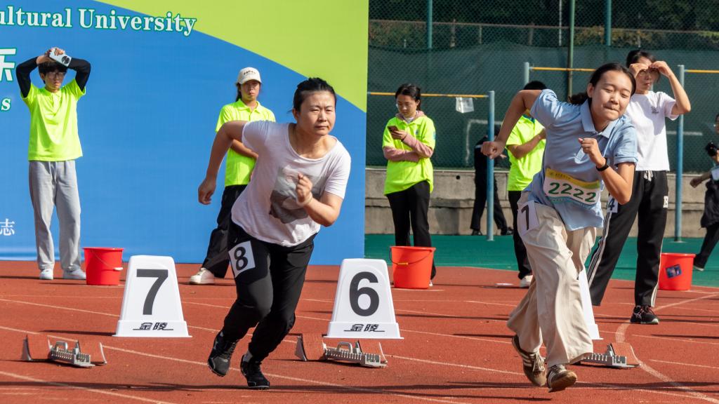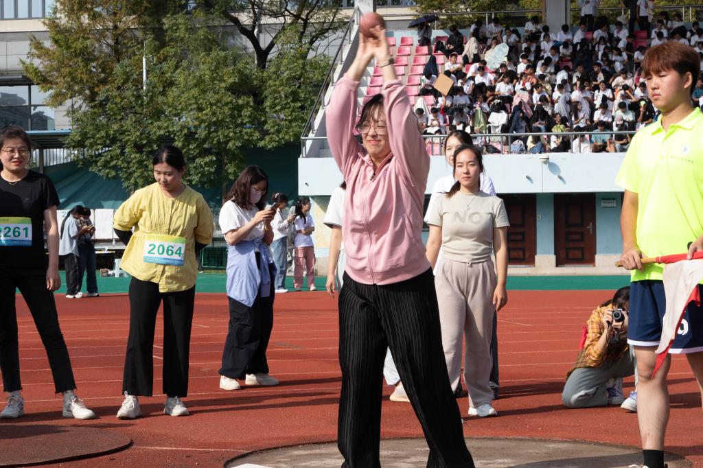 百米竞速,激情勃发。闵玲老师在赛场上全力以赴,取得了教工女子组100m第四名的成绩。闵玲谈道:“运动对我来说是工作的调味剂,给我带来正能量,帮助我排解压力,在平时我也会进行多种体育锻炼,无论是球类亦或是简单的跑步,都让我身心无比愉悦。”闵玲认为,运动会重在参与,重在寻乐,比赛的结果固然重要,但在比赛过程中的收获更加珍贵。“大家在平时可以多参加体育运动,换一个地方,换一种心情。这是很好的放松方式,可以帮助自己调整状态、保持动力、开阔思维。”