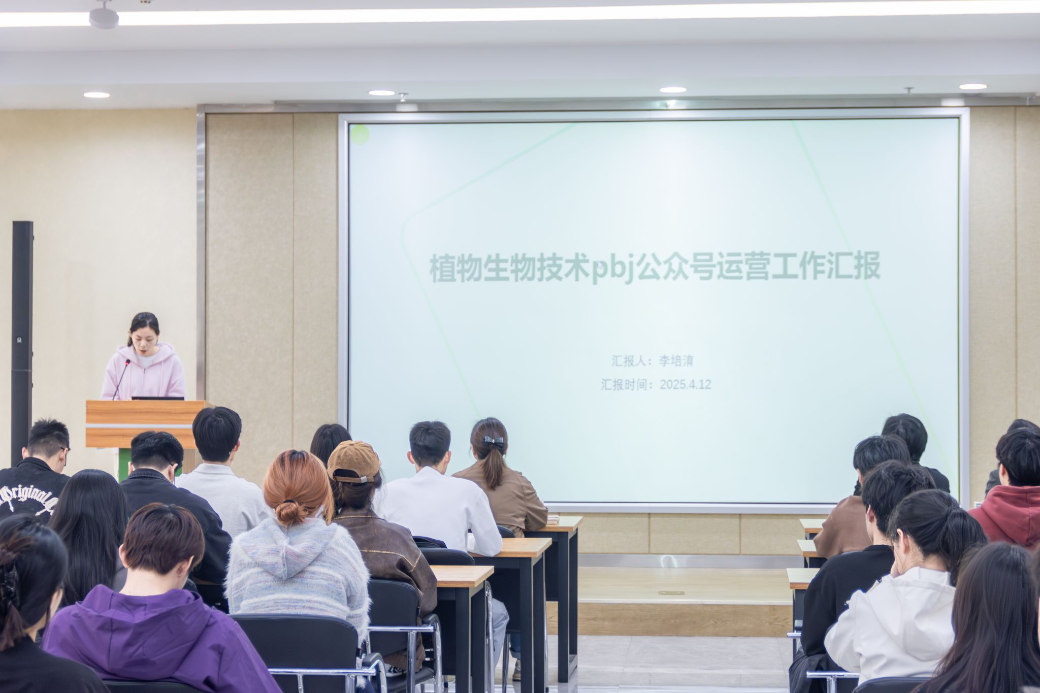 植物生物技术pbj学生负责人李培淯作为优秀团队代表发言,介绍了公众号的栏目与运营模式,系统梳理了公众号的经验做法。