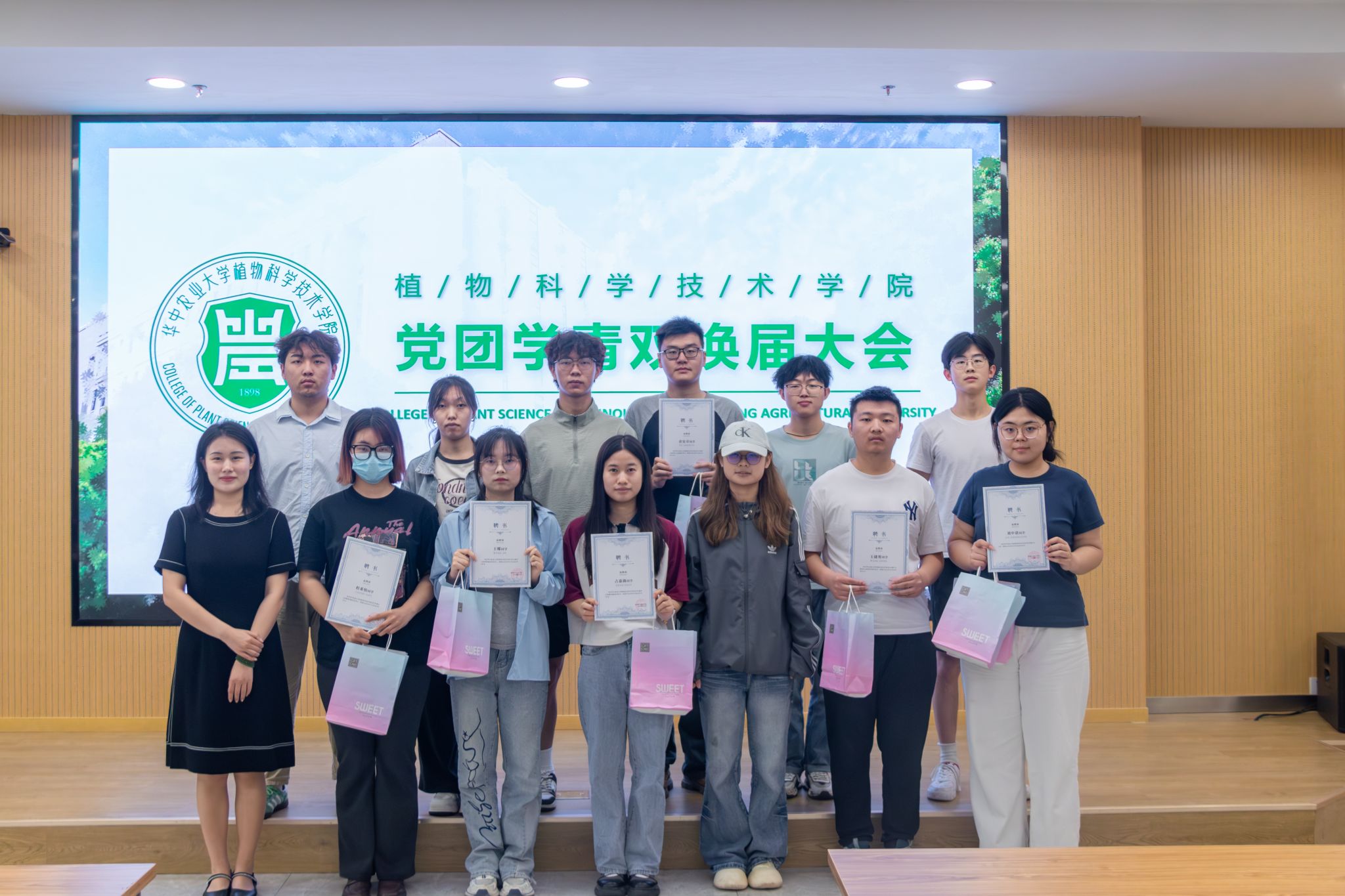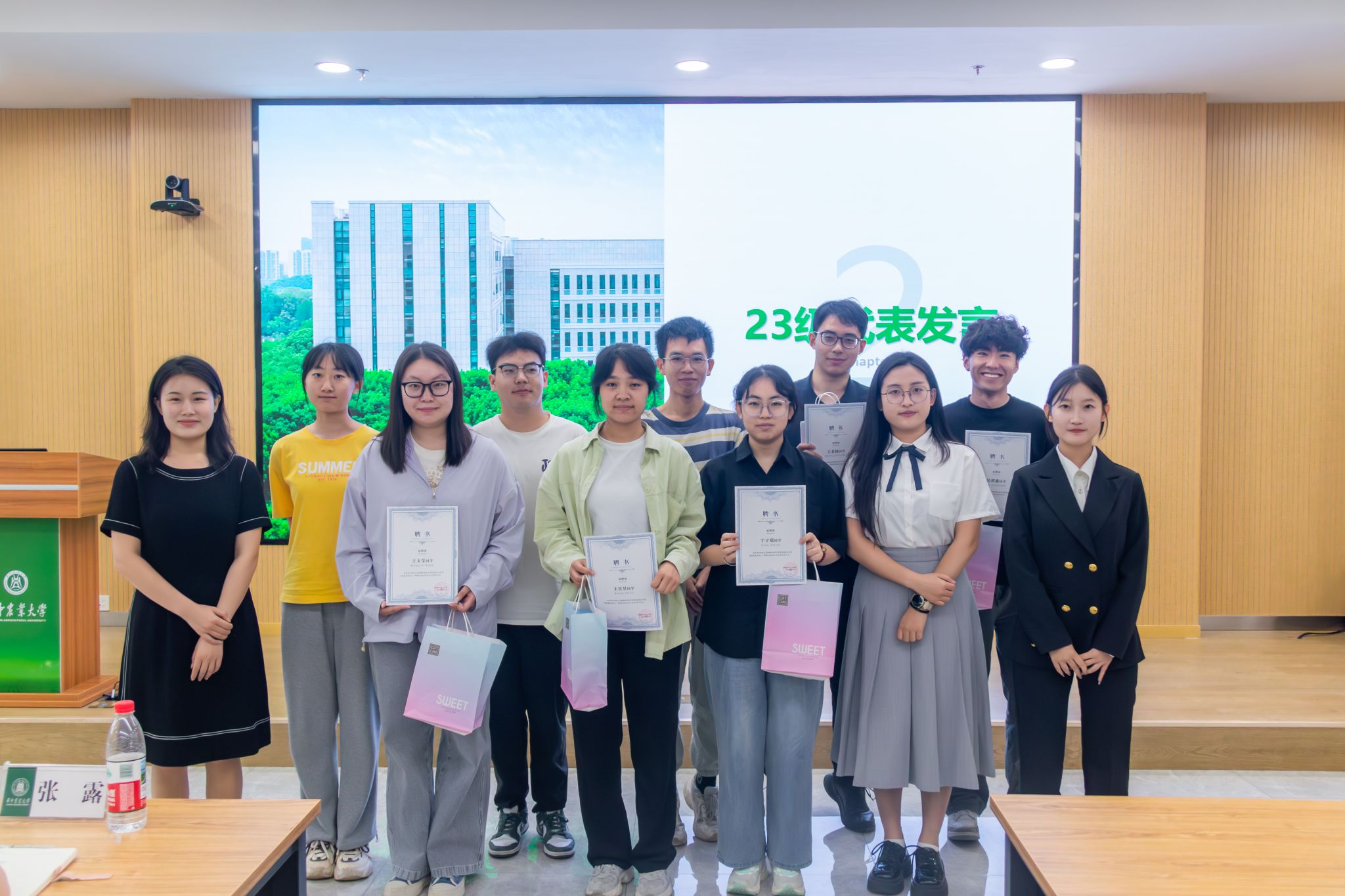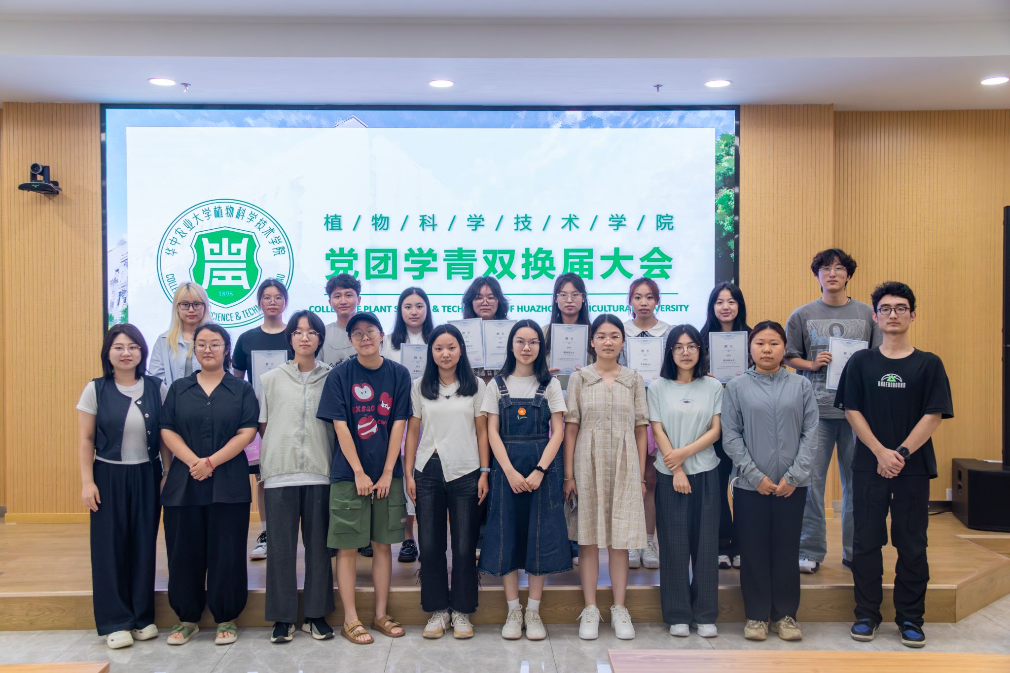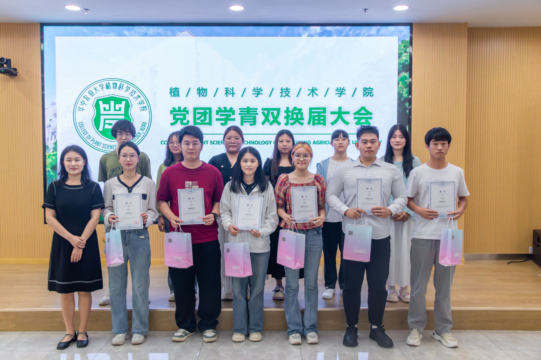 会议现场,党建办公室、团委、学生会、青年传媒中心和双创能力发展中心等部门负责人依次登台,围绕工作成果、现存问题等方面进行深入述职。他们用详实数据与生动案例,展现过去一年学生组织在服务师生等方面的积极作为。汇报结束后,辅导员为全体负责人颁发聘书,众人合影留念,定格这一重要时刻。