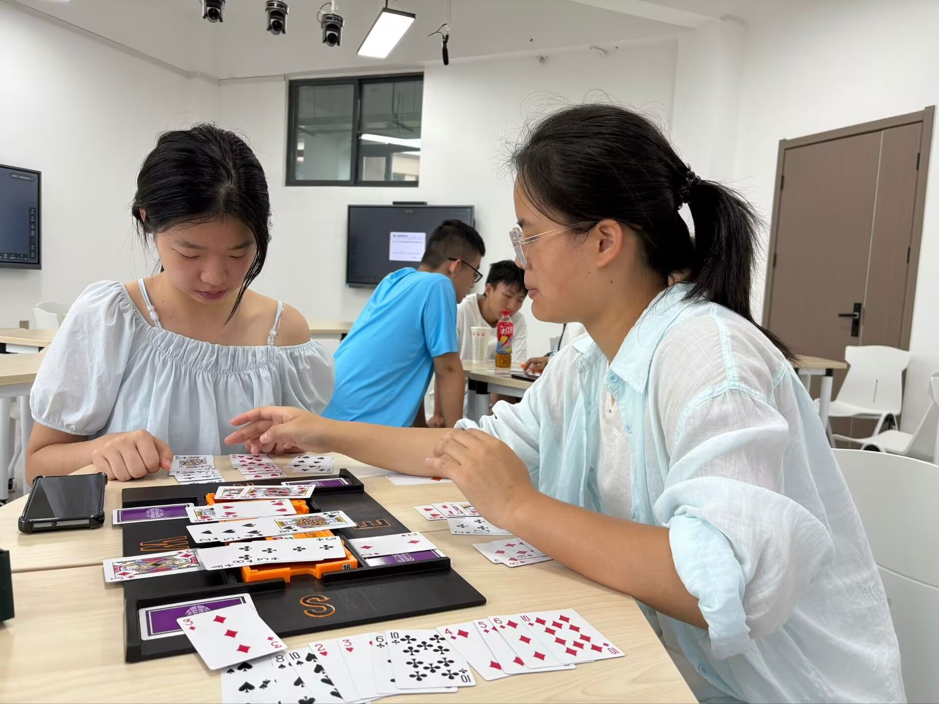 桥牌队举办了“初探桥艺,智启未来”主题活动,吸引零基础爱好者参与,在轻松愉悦的氛围中开启智力博弈之旅。 “原来桥牌不只是打牌,更需要和搭档的信任与默契!”首次参与的付琳恋同学表示,这种“动脑筋又能交朋友”的活动让她收获满满。