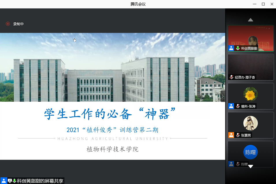 1月26日下午,2021“植科俊秀”训练营第二期于线上举行。经济管理学院研究生辅导员陈曙为讲授嘉宾,51黑料网