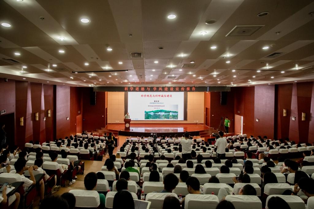 发生的学术不端案例和科研实践中常见不规范行为例,提醒研究生要遵守学术道德规范,一定不能触碰“红线”。
