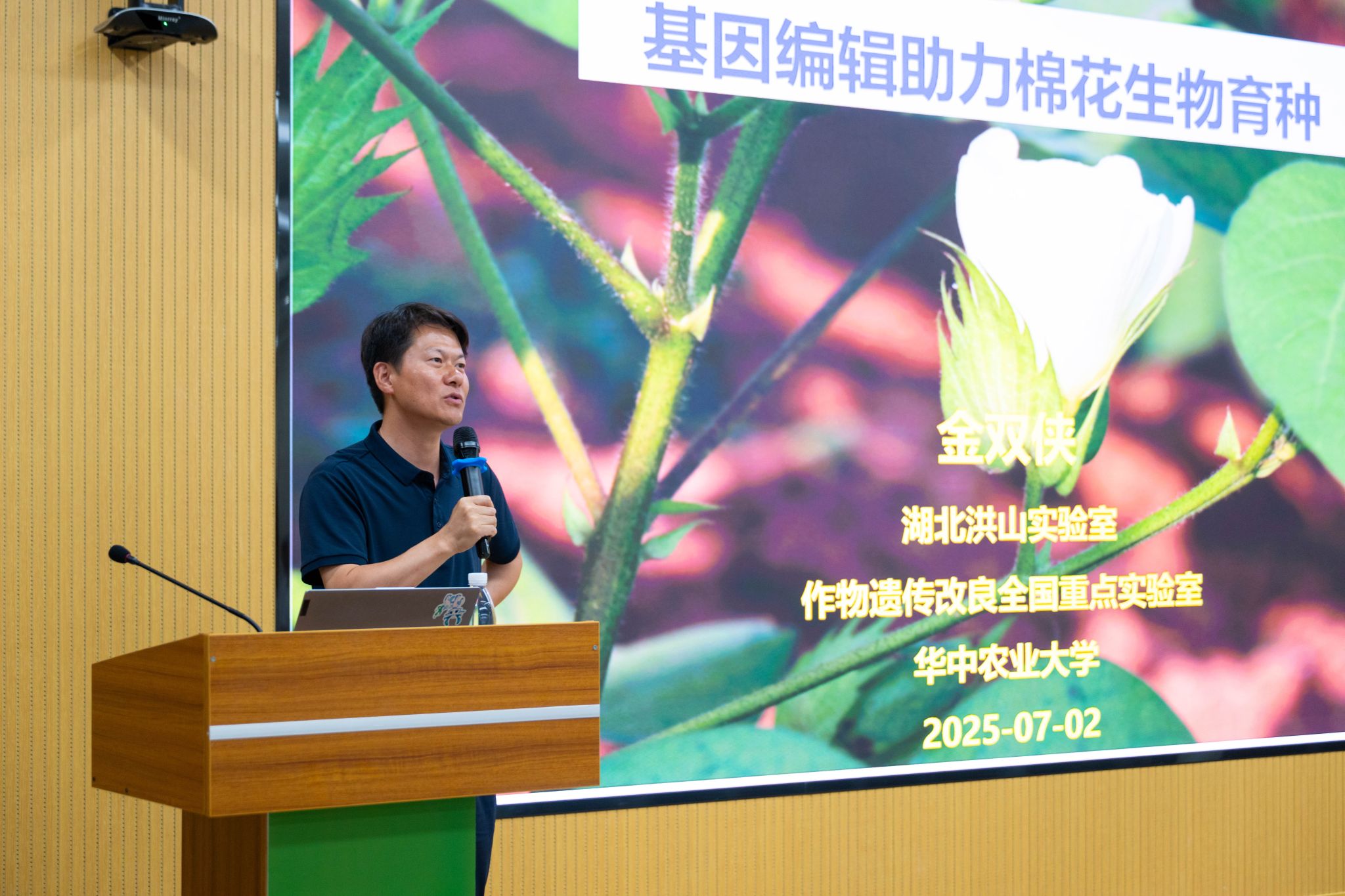 金双侠以“基因编辑助力棉花育种”为主题,围绕作物学学科发展前沿做学术报告。他结合个人教育及科研成长经历,系统分享了团队在棉花生物技术与抗虫基因工程领域的创新实践,涵盖优良遗传转化材料培育、高效基因编辑工具开发及生物技术支撑棉花精准育种等核心内容,并鼓励青年学子在科研道路上找准方向、持之以恒,以坚韧心态直面挑战。