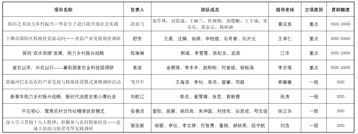 为响应研究生院加强在读研究生社会实践的要求,结合我院试点改革落实“全员全过程全方位”的三全育人理念,强化实践育人,有效增强研究生创新实践能力,根据申报书的内容质量和可行性分析,经过审核和评议,最终确定8支队伍资助立项本年度暑期社会实践项目,名单如下:
