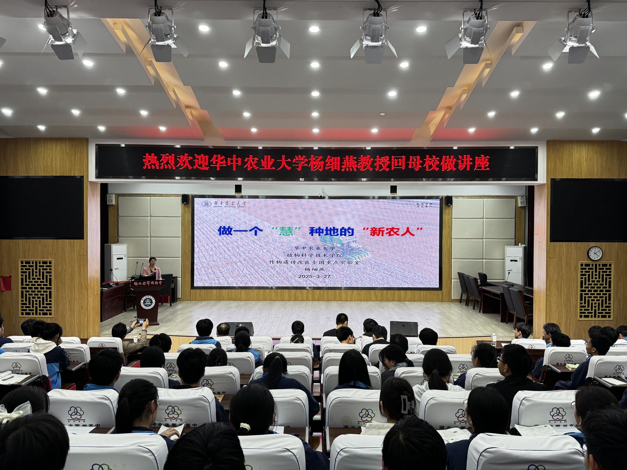 3月27日,我院赴鄂州高中开展“华农教授进名校”活动,杨细燕教授以“做一个‘慧’种地的‘新农人’”为题与200余名鄂高学子交流。