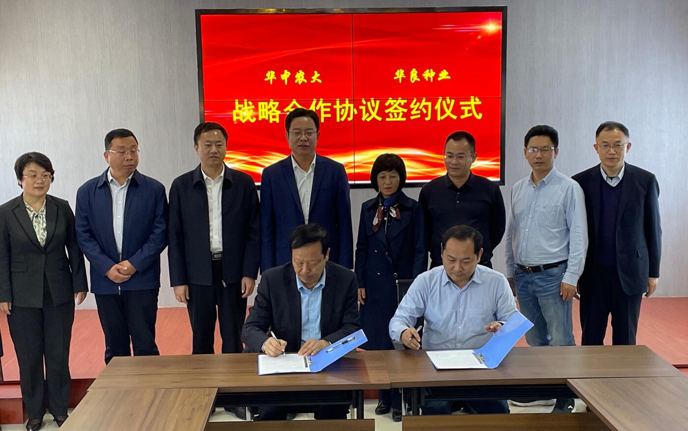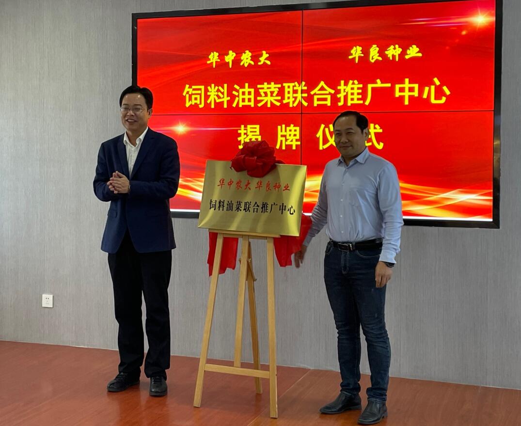 座谈会上,双方还签订了现代生物育种合作协议,并为“华农-华良”种业饲料油菜联合推广中心揭牌。