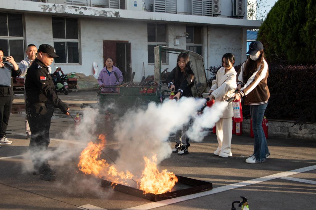 演习结束后,建安部工作人员指导师生现场学习灭火器的操作使用。在场师生通过亲身体验掌握了灭火器等消防设施的正确使用方法,进一步提高了广大师生的安全意识和应急能力。