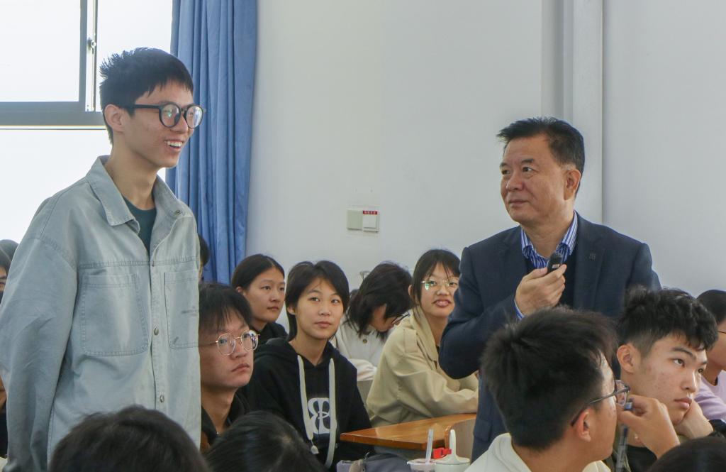 最后,姚江林用我院傅廷栋院士培育华油杂62号、刘永忠老师培育华玉11号、园艺林学学院叶志彪老师培育“倍味美”番茄品种等故事,向同学们展示了构筑粮食安全的“华农行动”,并以此勉励同学们在山水校园里静心学习,投身实践,不断练就兴农本领,在新的历史时期谱写爱农华章。姚江林寄语同学们道,“华农因农而生,强农而荣,希望同学们像校歌里唱的那样‘弘农学,扬国光’,担当起华农学子强农的科技责任、社会责任和政治责任。”