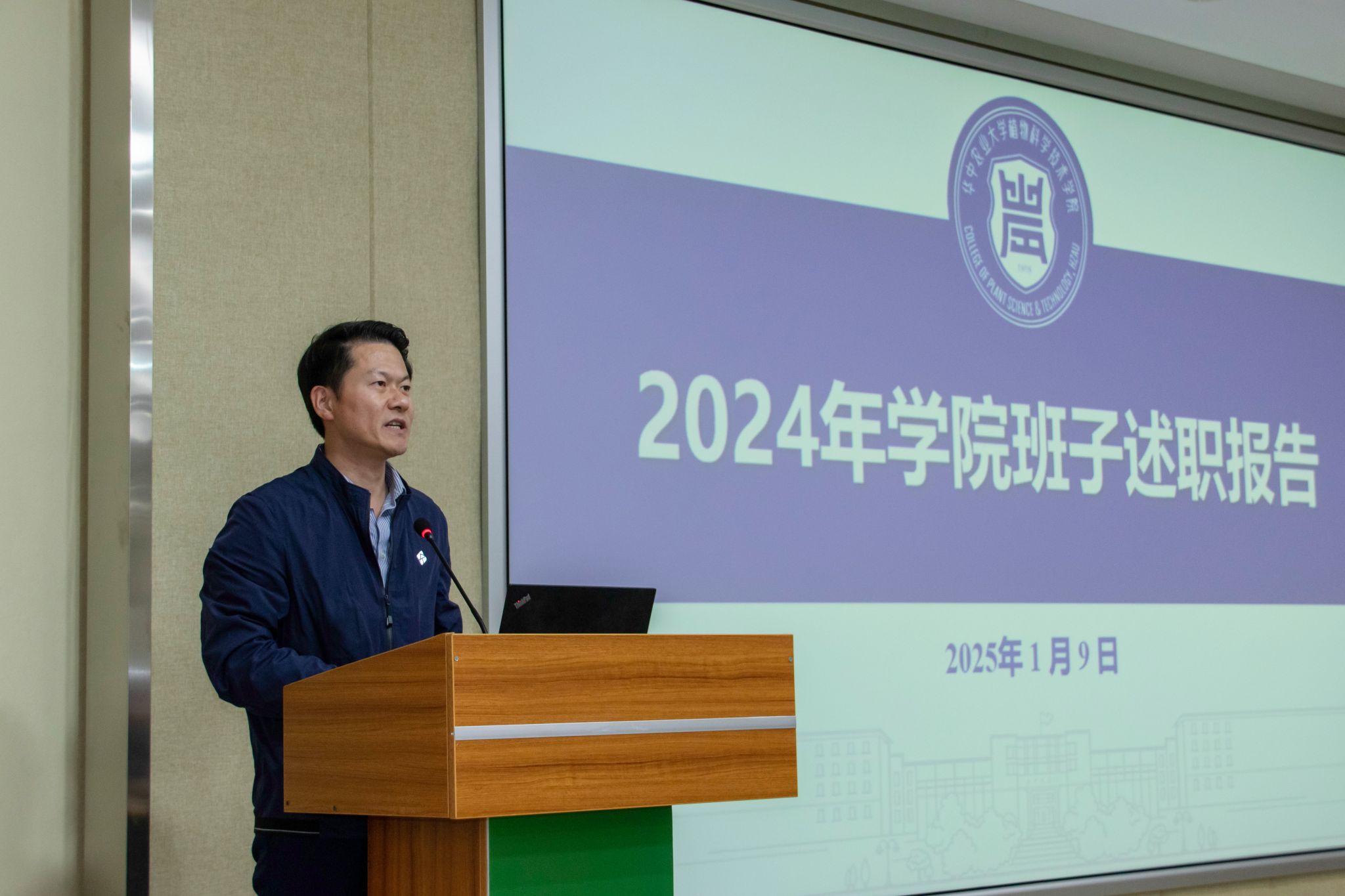 会上,院长金双侠作学院工作报告和个人述职述廉。他从党建与思想政治工作、本科人才培养、学位与研究生教育、科技工作与社会服务、学科与师资队伍建设、治理体系和治理能力建设等方面进行了全面梳理与总结,展示亮点举措和工作的奋进之笔,同时反思存在问题及不足,提出具体的改革措施和明年发展计划。他指出,在全体教职工的共同努力下,学院正逐步完成“十四五”规划目标,这些成绩离不开学院全体教职工的努力。下一步,学院将持续以习近平新时代中国特色社会主义思想为指引,切实把思想和行动统一到落实学校第十一次党代会的重大决策部署上来,跑出新动能和加速度。随后,孙超等人依次进行个人述职述廉报告。