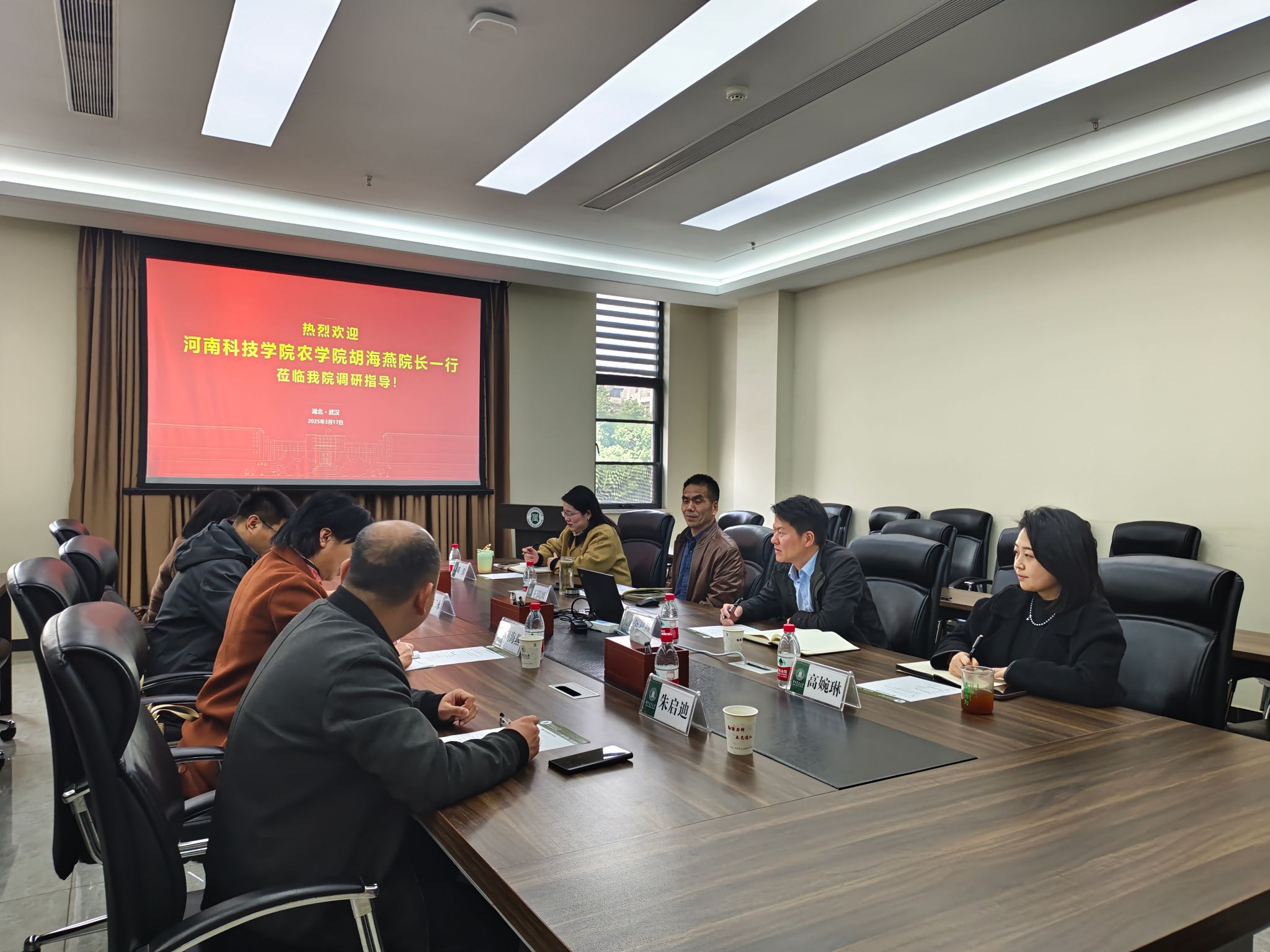 3月17日,河南科技学院农学院院长胡海燕一行4人莅临我院,就人才培养、学科建设及科研合作等方面展开深入调研与交流。学院院长金双侠,副院长王满囷出席座谈会。
