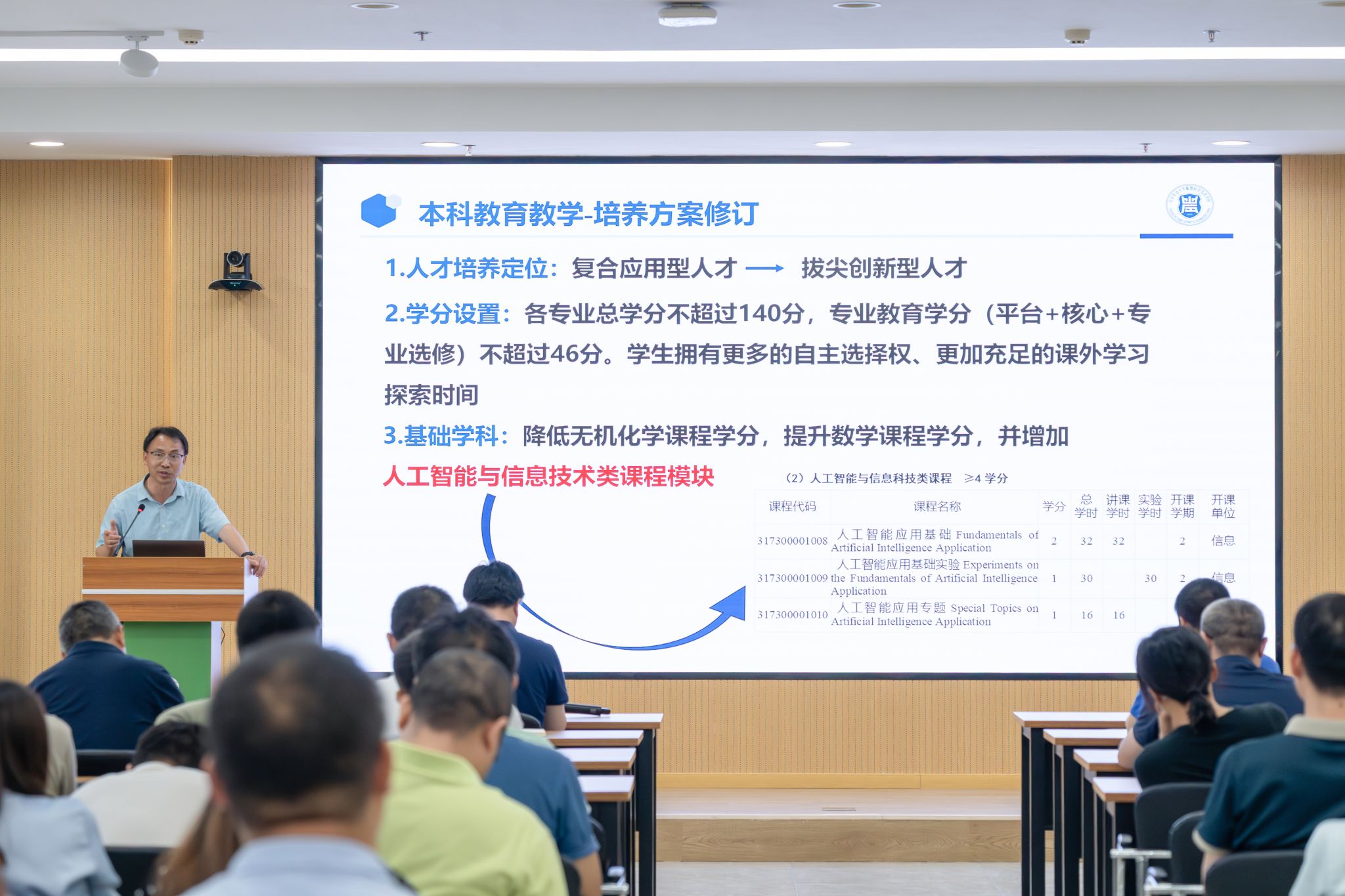 副院长罗朝喜就本科人才培养工作进行了工作布置。他从培养方案修订、教育成果奖评审、本科就业工作三个方面展开。为缓解创新型人才短缺问题,学院对培养方案进行多项修订:以培养“拔尖创新型人才”为目标,重新规划学分设置,赋予学生更多自主选择权;在专业课设置上突出跨学科融合,新增人工智能与信息技术课程模块;推动实践教学发展,注重产教融合,积极创设育人新环境。针对即将截止的教学成果奖申报工作,他强调,申报选题要契合国家政策导向,充分体现创新性、实用性与科学性。此外,他还通报了本科就业工作情况。