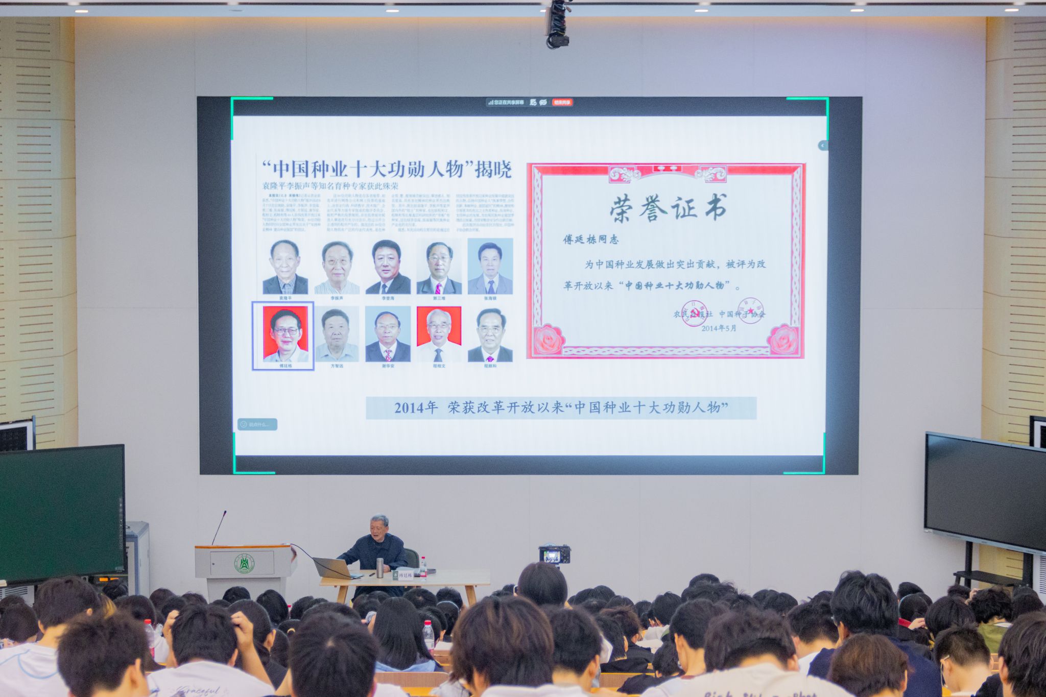 他寄语同学们注重锤炼品格、提升素养,坚持“四个面向”,把个人理想融入国家发展大局,在服务种业振兴、建设农业强国的征程中实现人生价值