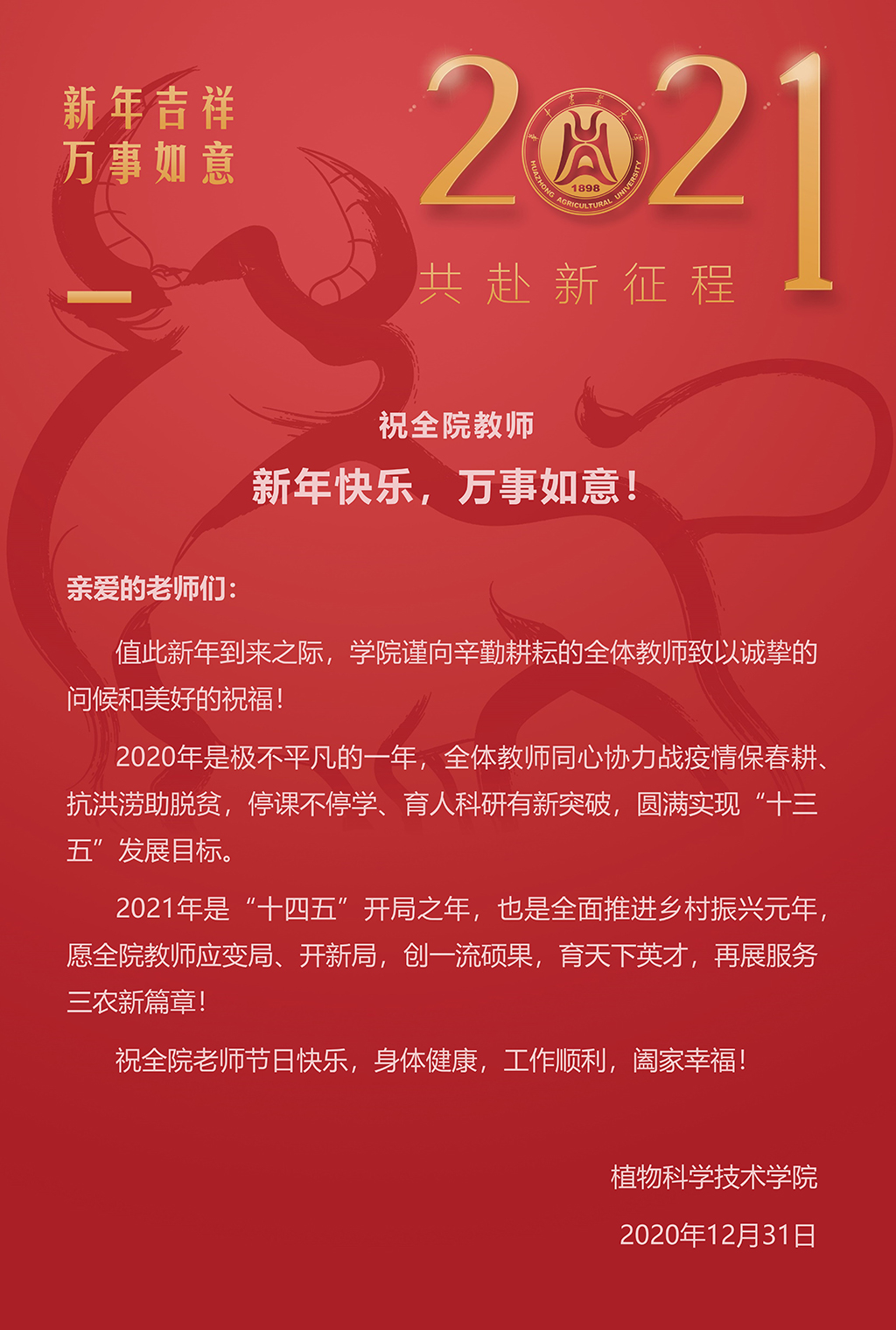 祝全院教师新年快乐,万事如意!