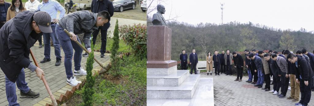 大家还在杨新美塑像前种下四株松柏,在3月12日植树节当天,用一抹翠绿,向杨新美先生表达新一代科研工作者的拳拳报国之心。