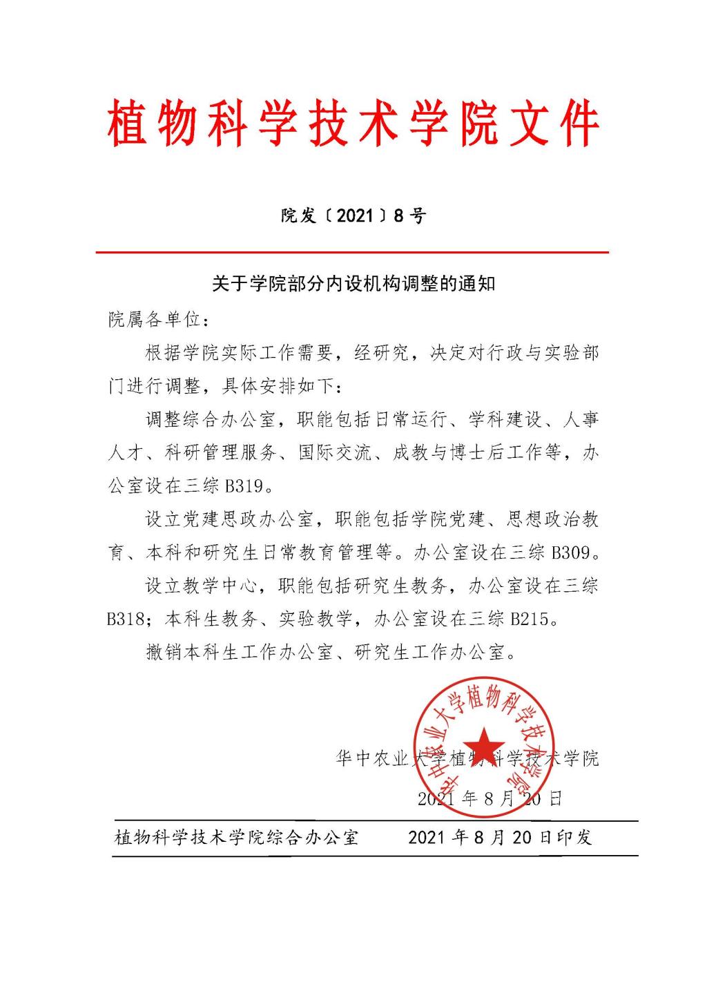 关于学院部分内设机构调整的通知