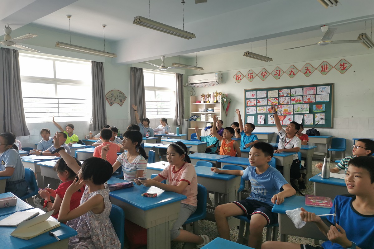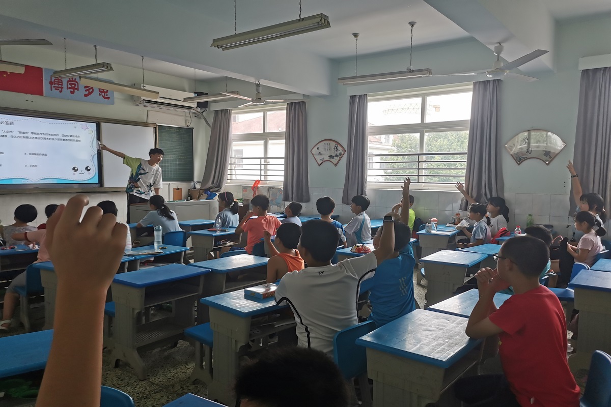 的汪彧和刘诗云组织了同学们进行知识竞赛。题目涉及自然科学、动物植物辨别、安全知识和国学经典等多个方面。他们将同学们进行分组,由组内协商给出答案,采取积分制规则,比赛结束后根据积分颁发相应奖品。同学们都踊跃举手回答问题,积极配合实践团成员进行教学活动。据了解,为了能准确解读题目涉及的知识内容,汪彧提前准备了教学提纲。同时,负责计分的刘诗云耐心询问同学们的答案,核对小组得分。在课程最后,汪彧感叹道:“这次教课对我来说,意义非凡。我不仅体会到了教师的责任与教学过程中的辛苦,也感受到了同学们的朝气蓬勃与青春活力。不少同学对我们的课程表现出来了极大热情,那一刻,我觉得所有的努力都是值得的,内心非常幸福。”