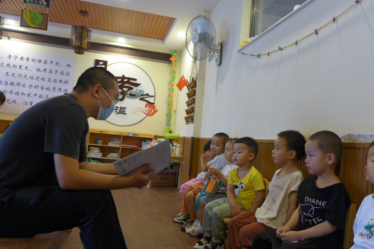 随后,小队成员邹斯宇为孩子们讲述了有关我国首届国家最高科学技术奖得主、杂交水稻之父袁隆平的故事《一粒改变世界的种子》。“正是这粒神奇的杂交水稻种子,让中国人民从此不再忍饥挨饿,让我们能健健康康地成长。”邹斯宇讲道。此前提到袁隆平爷爷,一部分孩子表示有所了解,另一部分则有些茫然,在主讲人讲述完毕后,孩子们议论纷纷和感叹。一个孩子大声说道:“我也要成为像袁爷爷一样的科学家!”讲述中,邹斯宇向孩子们说明了粮食的宝贵,并告诫孩子们不要浪费粮食。“无论是制成馒头的小麦,制成咸菜的卷心菜和胡萝卜,还是碗中的大米,都是农民伯伯和科学家们日日夜夜的劳动成果,而不浪费粮食就是对他们最好的报答。”邹斯宇向孩子们说道。孩子们纷纷点头并表示以后一定不会剩饭剩菜,在场的教师也非常赞许。