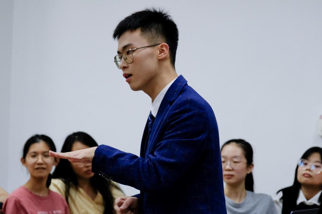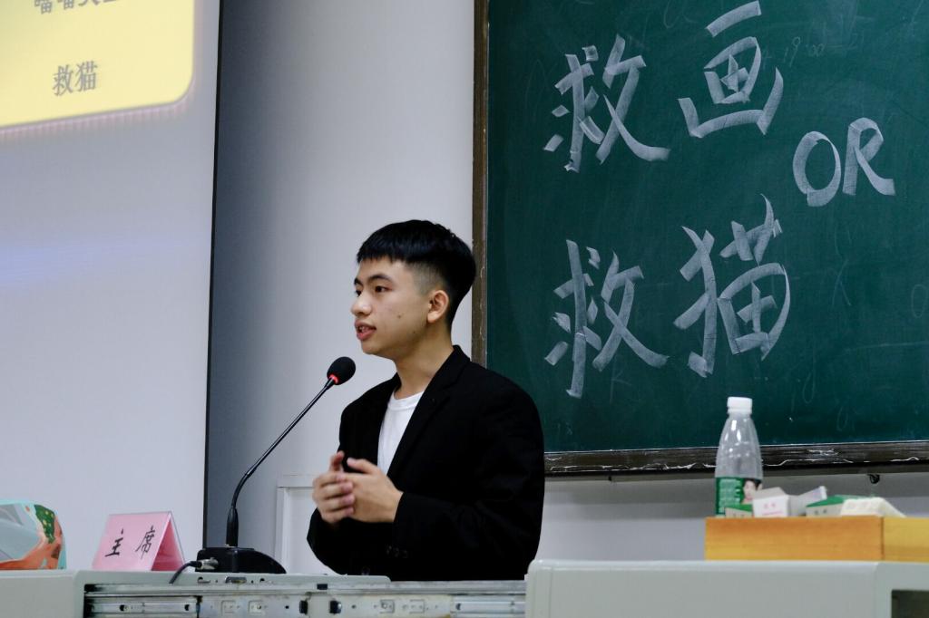 活动尾声,在场的部分观众也受邀体验了辩论的感觉。不少同学对于这道辩题提出了很多尖锐的、新颖的观点,获得辩论队成员的赞许。来自研植2109班的彭炫炜对本次比赛提出了建议,他认为反方从生命平等的角度上做切入是不合理的,因为所有的价值都是人所建构出来的,其他生命的价值则完全是依照我们的喜好给它们的价值做了一个排序。因此真正需要讨论的是应该救我所爱的,还是应该救更有价值的。