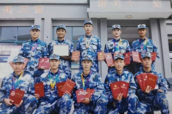 他说:“漫长却又短暂的三个月,让我终身难忘。”单杠拉不上去就一直拉;三千米跑不快就跑两遍;手榴弹投不远就以“箱”为单位加练。班长告诉他:“如果你想把一件事情做好,那就不断去重复,量变达到质变,最终不管什么事情都会做的出神入化。”他每天听到最多的是“再来!”,说过最多的是“再坚持一下!”。习惯了每晚俯卧撑、仰卧起坐、引体向上“三个一百”,习惯了饭前小练兵,习惯了睡梦中被骨膜炎痛醒。最终他争得为数不多的“全能新兵”称号。