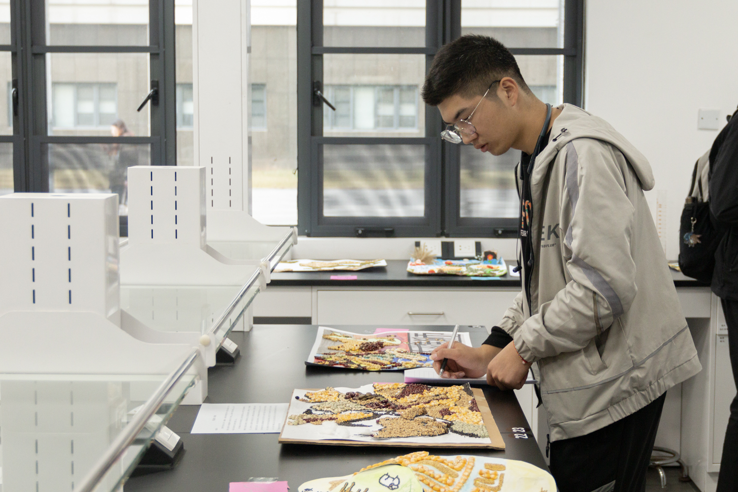 各位评委在工作人员的介绍下,依次对陈列在B112的种子画作品进行评分。在评选种艺视频时,由工作人员播放参赛视频。参赛选手充分发挥了想象力,拼接出他们心中的那份种子梦。有利用种艺作品科普种业精准扶贫的,有用瞬时定格动画讲述禾下乘凉梦的,还有用朗诵文章的方式表达对时代楷模钟杨赞美的……引得评委们的阵阵称赞。“小小的种子承载着大大的梦想。”来自植生2103的黄思思在看视频的过程中感慨道,“一篇篇创作像是在述说着中国故事,载人航天,种业强国,禾下乘凉梦……”她表示,通过参加这次活动,对于种子也多了份难以名状的敬畏之心。