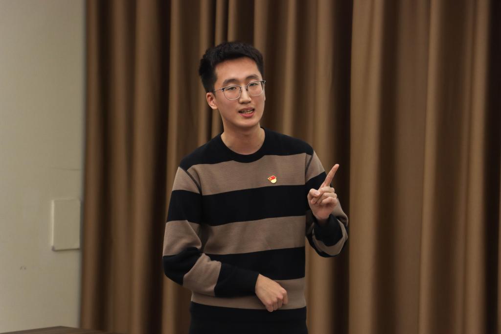 随后贾少臣同志以“勿忘国耻,砥砺前行—纪念反法西斯战争胜利76周年”为切入点,从南京大屠杀、平型关大捷、万家岭大捷、台儿庄大捷这几段历史事件出发,向大家展现了抗日战争的残酷与反法西斯战争胜利的来之不易。贾少臣同志谈到,反法西斯战争对全世界人民来说都是一段凝聚着血与泪的历史,身为党员的我们在学习这段历史时,要做到铭记历史,居安思危。
