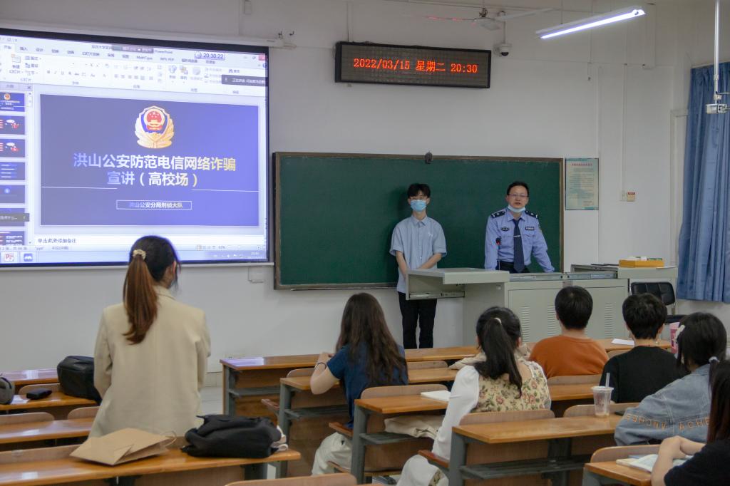 3月15日晚,洪山区公安分局郭锋警官、龚德军警官做客“问学斋”,为同学们带来了精彩的防范电信网络诈骗宣传讲座,此次讲座由问学与发展部冯正阳主持。