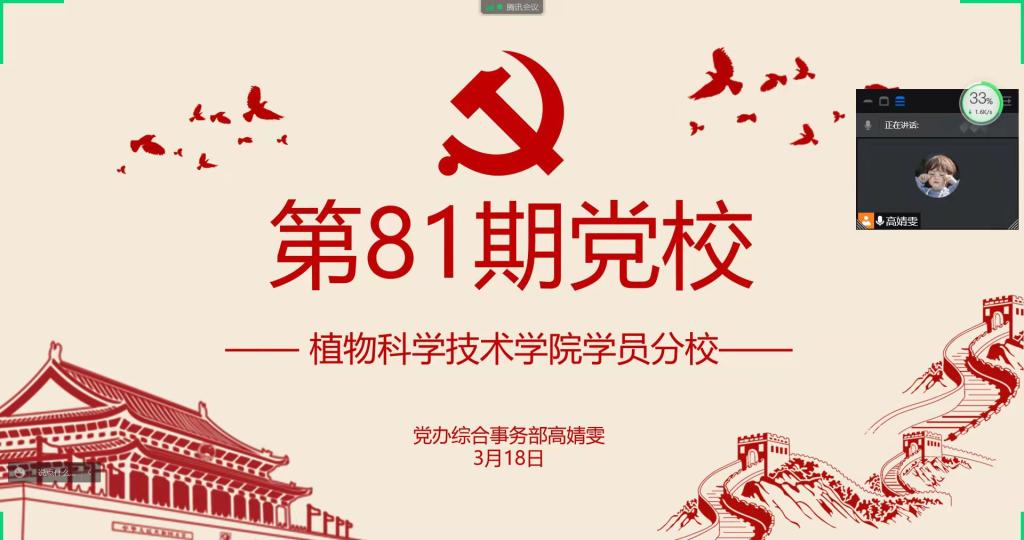 第81期党校开班仪式顺利进行。根据疫情防控要求,本期党校开班仪式通过腾讯会议进行,全体学员线上参会,我院大学生党建工作办公室工作人员于荟七六楼活动室为入党积极分子答疑解惑,辅导员张涛参加会议。