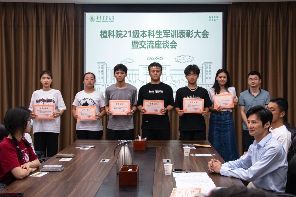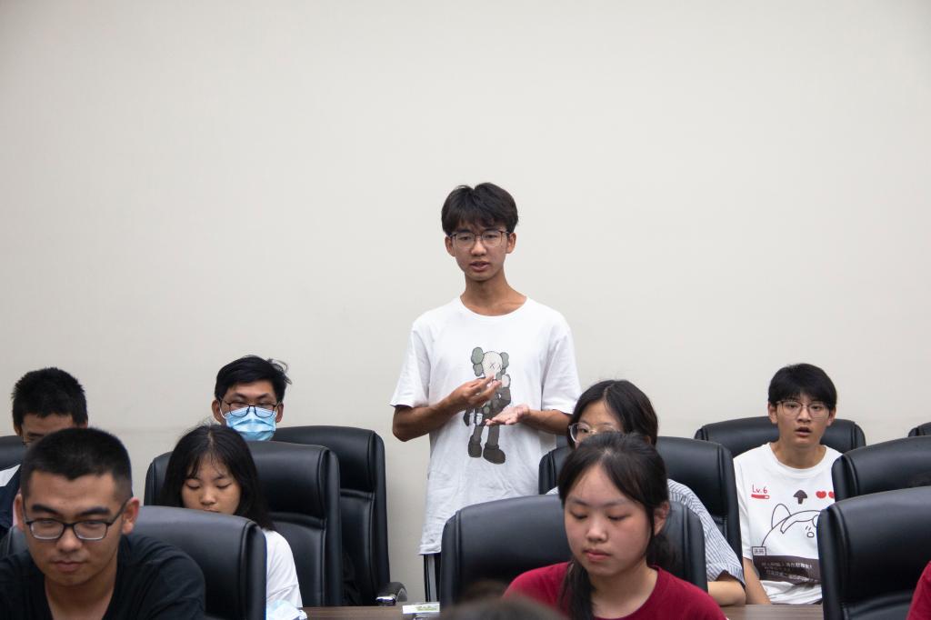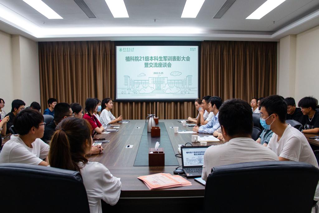 在第三综合楼B308举行了2021级本科生军训优秀学员交流座谈会。43名“军训优秀学员”与2021级班主任代表周兴苗、苏汉东老师,回味军训生活,畅想大学与未来。